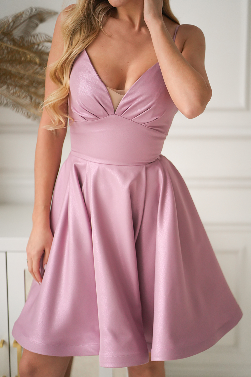Ez az elragadó, fényesen csillogó miniruha igazán különleges megjelenést biztosít minden alkalomra. A hátul található fűzős, fűzőszerű megoldás tökéletesen formálja a felsőtestet, miközben a rugalmatlan, brokát hatású anyag elegáns tartást ad a ruhának. A könnyedén bővülő szoknyarész fiatalos lendületet és nőies finomságot kölcsönöz, így a ruha kiváló választás ünnepi eseményekre, estélyekre, születésnapi összejövetelekre vagy bármilyen alkalomra, ahol ragyogó megjelenésre vágysz.