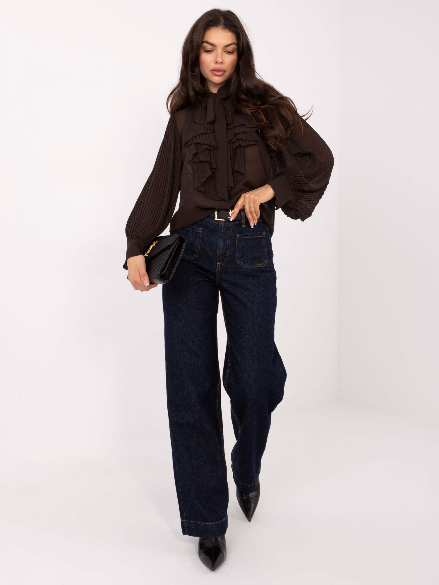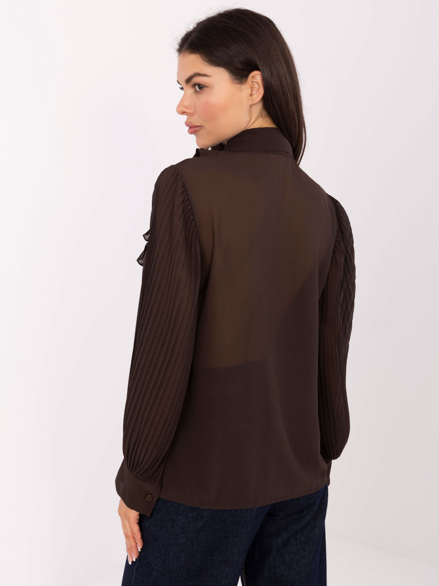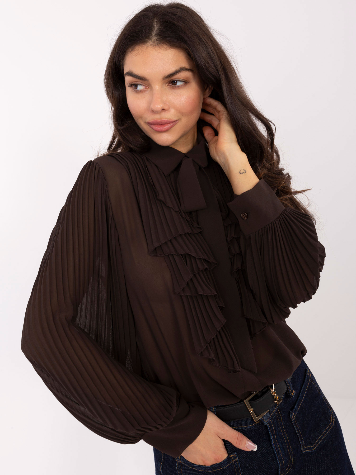Az Italy Moda elegáns, letisztult stílusú blúza tökéletes választás mindennapi viselethez, munkahelyre vagy akár alkalmi megjelenéshez is. Könnyed, lágy esésű poliészter–elasztán anyaga szépen simul a testre, miközben kényelmes érzetet biztosít egész nap. A klasszikus gallér és a gombos záródás időtálló eleganciát sugároz, amelyet a finoman fodrozott, masnis megkötéssel díszített előrész még különlegesebbé tesz. A blúz egyszínű kialakítása egyszerűen kombinálható szoknyával vagy nadrággal, így könnyen beilleszthető a mindennapi és alkalmi ruhatárba is.