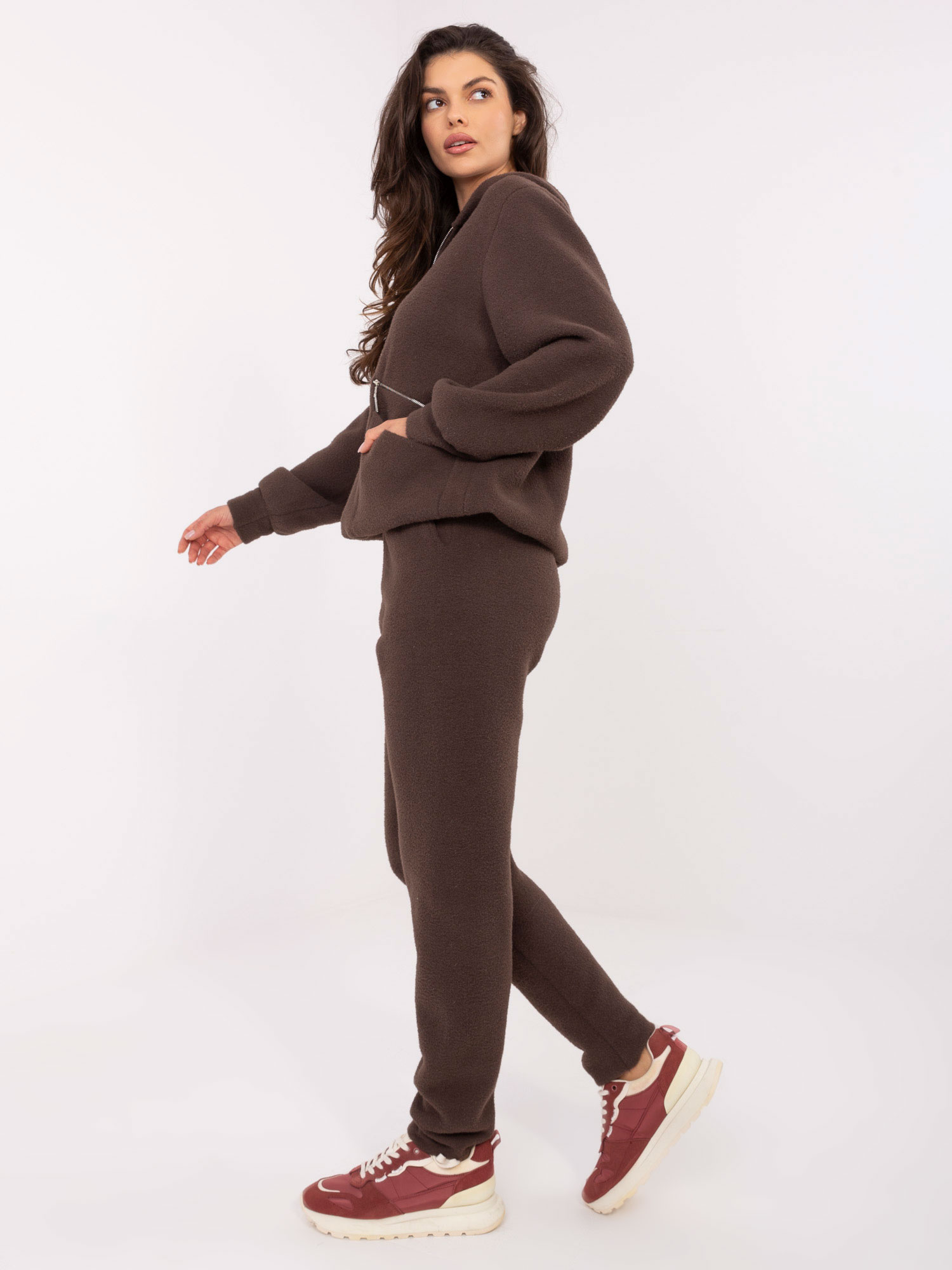 Barna gyapjú szett kapucnis pulóverrel