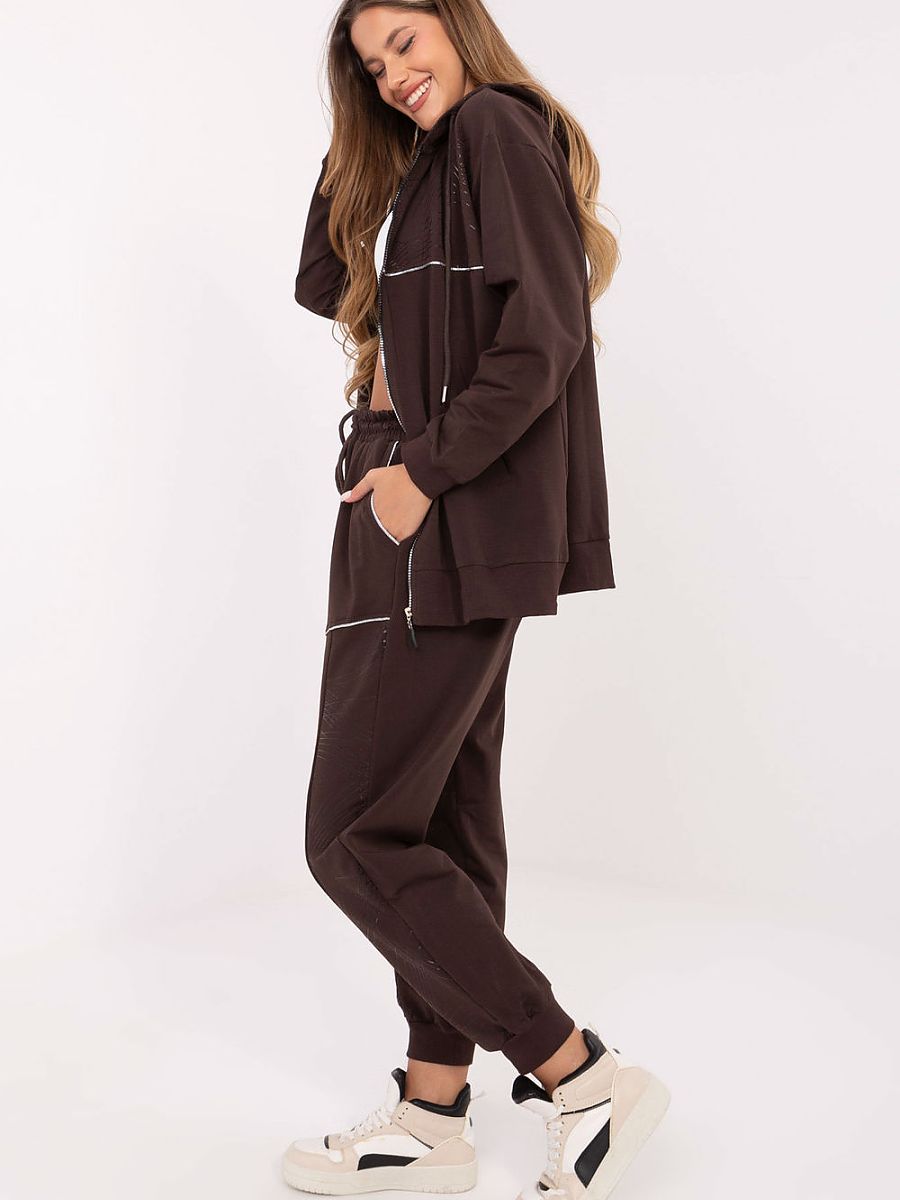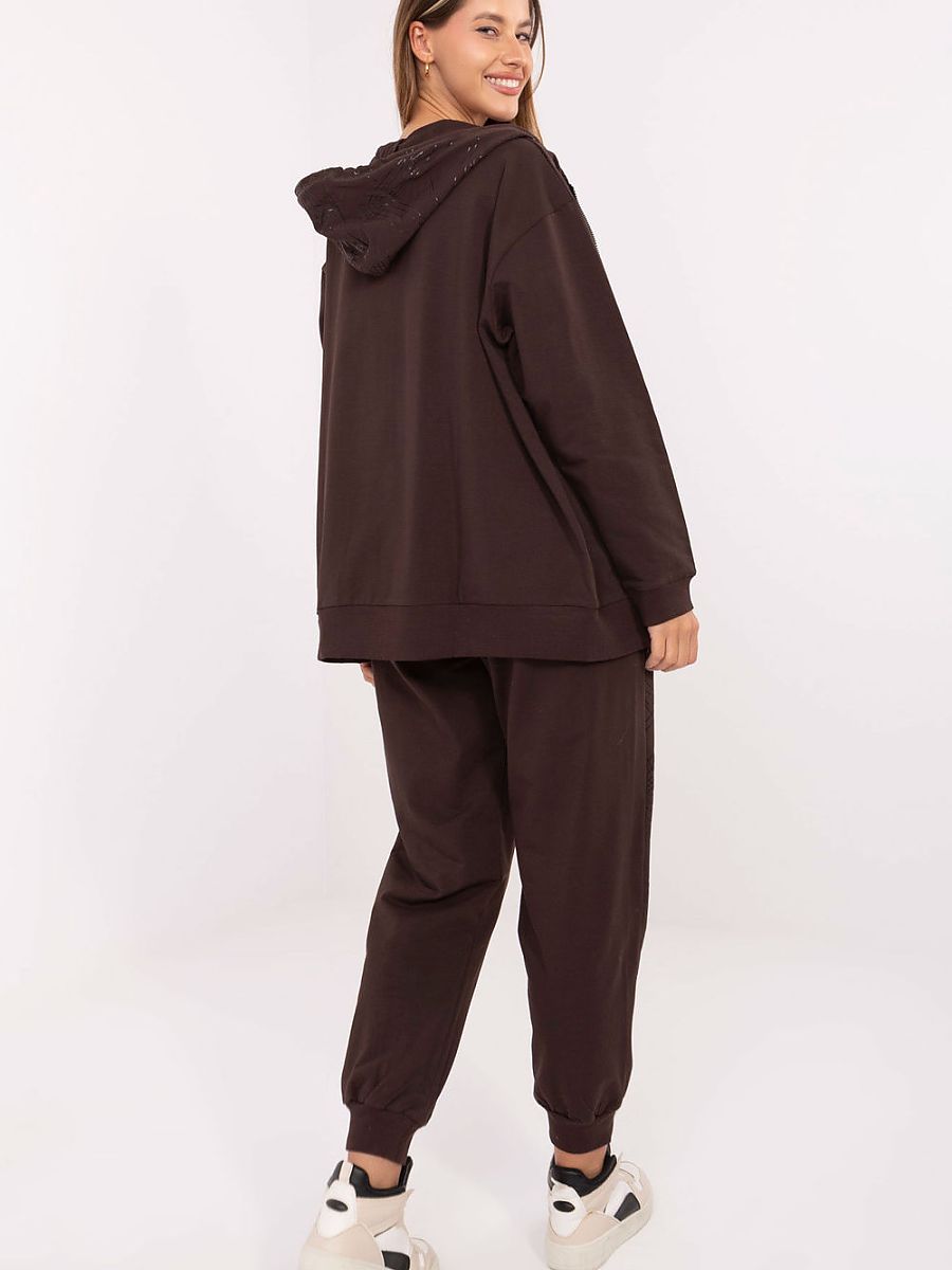 Ez a Relevance női szett – kapucnis pulóver és nadrág – tökéletes választás a mindennapokra, amikor a kényelem és a stílus egyszerre fontos. A puha, pamutanyagból készült összeállítás modern nyomott mintával díszített, amely sportos-casual hangulatot kölcsönöz. A felső hosszú ujjú, kapucnis kialakítással, a nadrág pedig magas derekú fazonban, kényelmes gumírozással és oldalzsebekkel készült. Az alsó szárát rugalmas passzék zárják, így garantált a komfort és a jó illeszkedés.