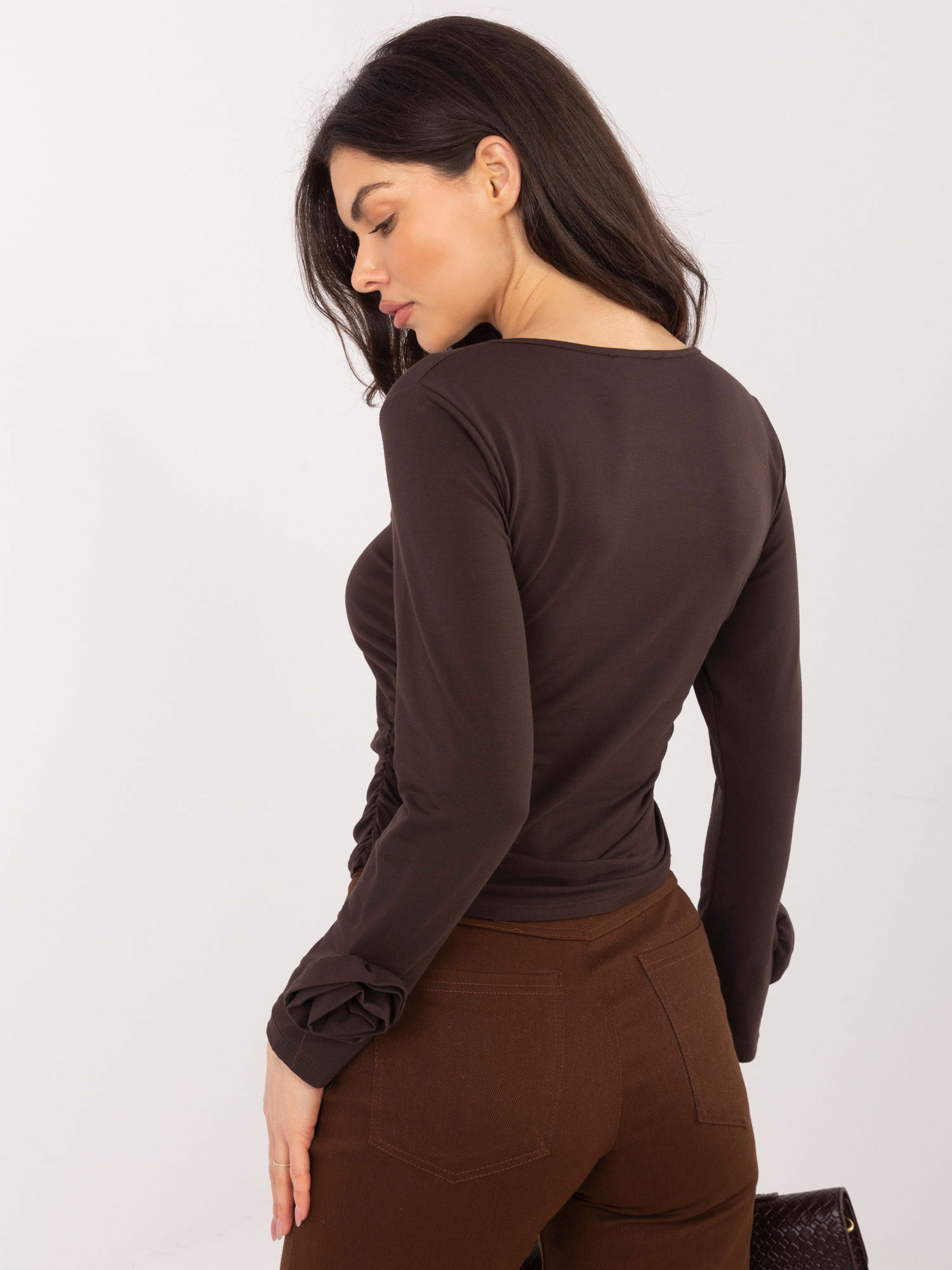 ITALY MODA nőies, letisztult, rövid fazonú, hosszú ujjú, testhez simuló felsője könnyed, mindennapi viseletre készült. A puha, teljes egészében pamut anyag természetes kényelmet ad, miközben a finom ráncolások elegáns részletként emelik ki a derékvonalat. A kényelmes szabás miatt farmerrel és szoknyával is harmonikusan mutat.