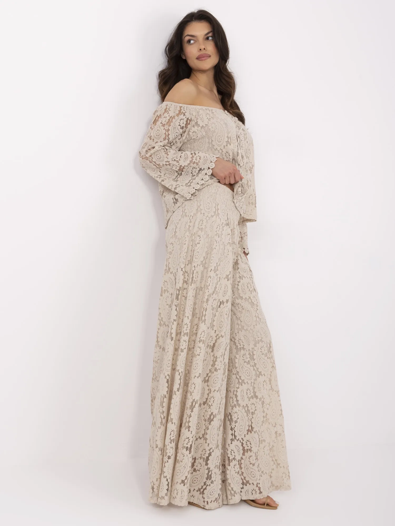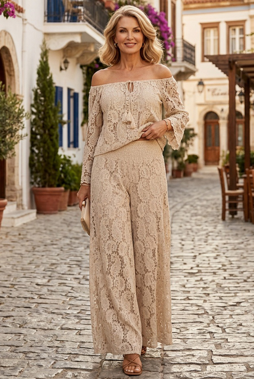 Az Italy Moda palazzo nadrágja finoman ötvözi a romantikus részleteket a modern eleganciával, így igazán különleges darabja lehet a gardróbodnak. A csipkés hatású, áttört anyag nőies és légies megjelenést kölcsönöz, miközben a bélés gondoskodik a kényelmes és magabiztos viseletről. A bő szárú fazon és a hosszú szabásvonal elegánsan nyújtja az alakot, a derékrészen kialakított ráncolás pedig kényelmes illeszkedést biztosít. Ez a nadrág ideális választás, ha egy stílusos, mégis könnyed darabot keresel, amely alkalmi eseményeken és a hétköznapokban is megállja a helyét.