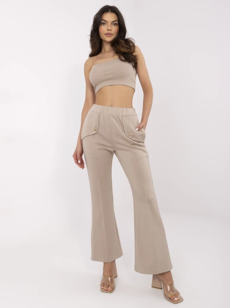 Az egyméretű nadrág méretei laposan mérve: derékszélesség – 66 cm, derékszélesség – 116 cm (nyújtás után), csípőszélesség – 96 cm, teljes hossz – 99 cm.