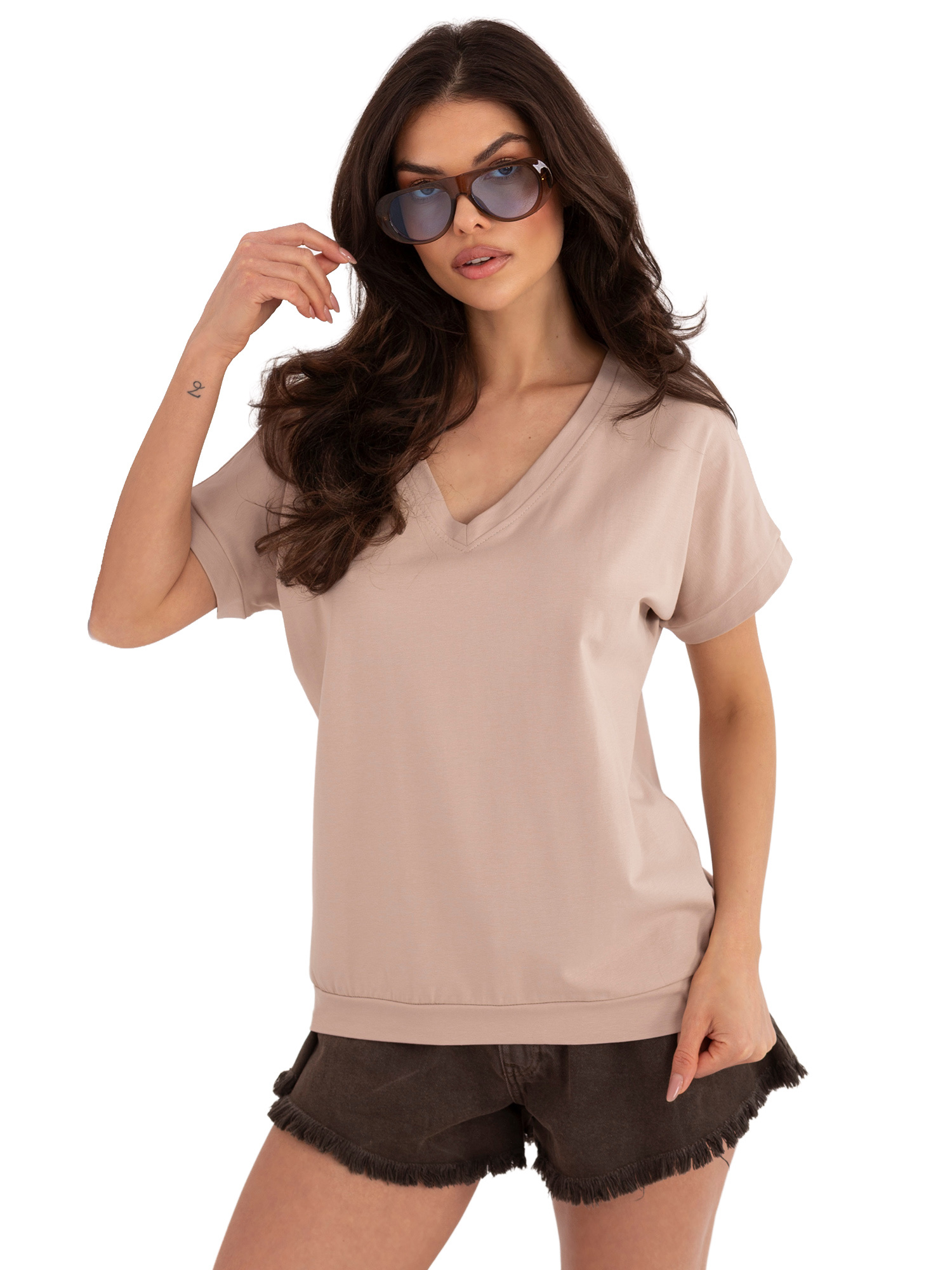 A Rue Paris hétköznapi blúza letisztult és nőies alapdarab, amely könnyedén illeszkedik a mindennapi öltözködéshez. A V-nyakkivágás finoman hangsúlyozza a dekoltázst, miközben elegáns, mégis természetes megjelenést ad. A rövid ujjú kialakítás kényelmes viseletet biztosít, a pamut alapú, enyhén rugalmas anyag pedig kellemes érzetet nyújt egész nap. Egyszerű szabásának köszönhetően sokoldalúan kombinálható, így ideális választás munkába vagy hétköznapi szettekhez is.