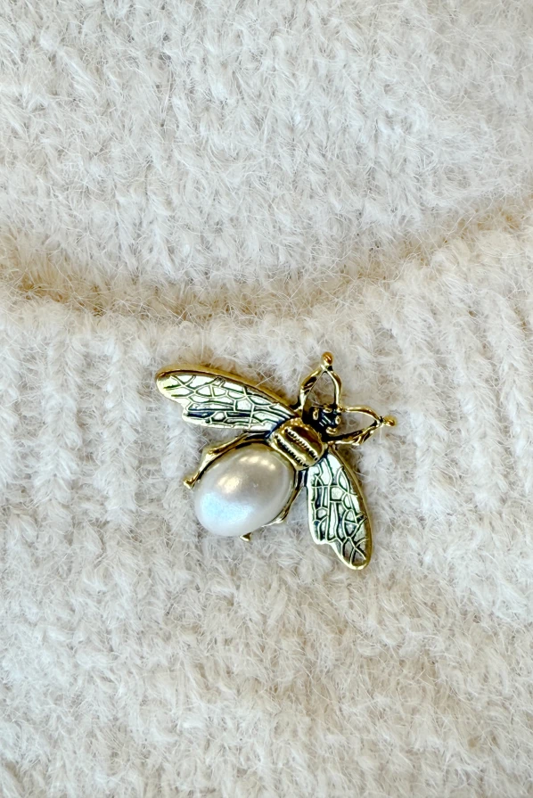 Bézs oversize kardigán brossal