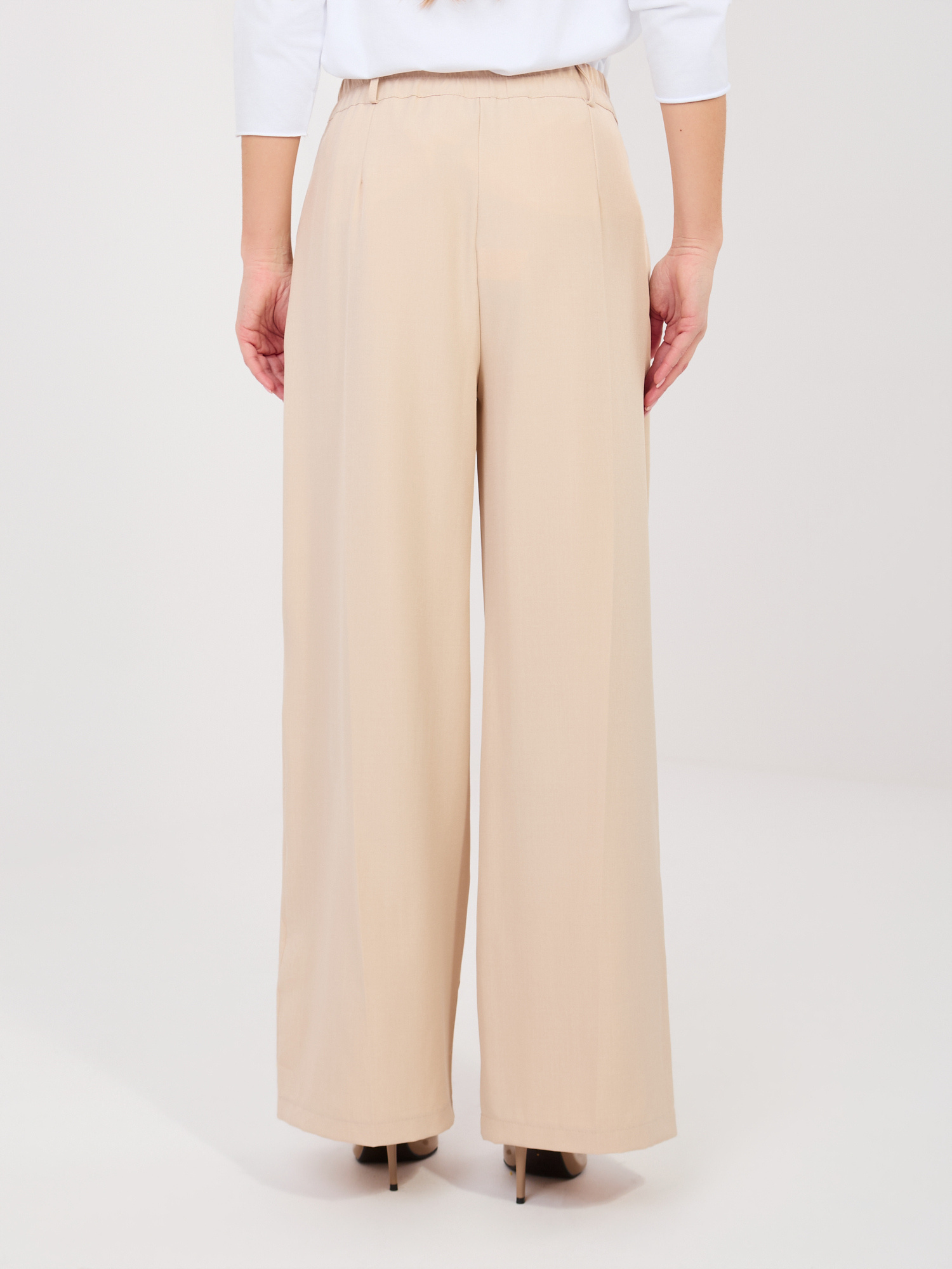 A RUE PARIS elegáns széles szárú nadrágja stílusos és sokoldalúan viselhető darab, amely ideális mindennapi, munkahelyi vagy alkalmi megjelenéshez is. A magas derekú szabás szépen kiemeli a derékvonalat, míg a széles szár modern, letisztult sziluettet ad.