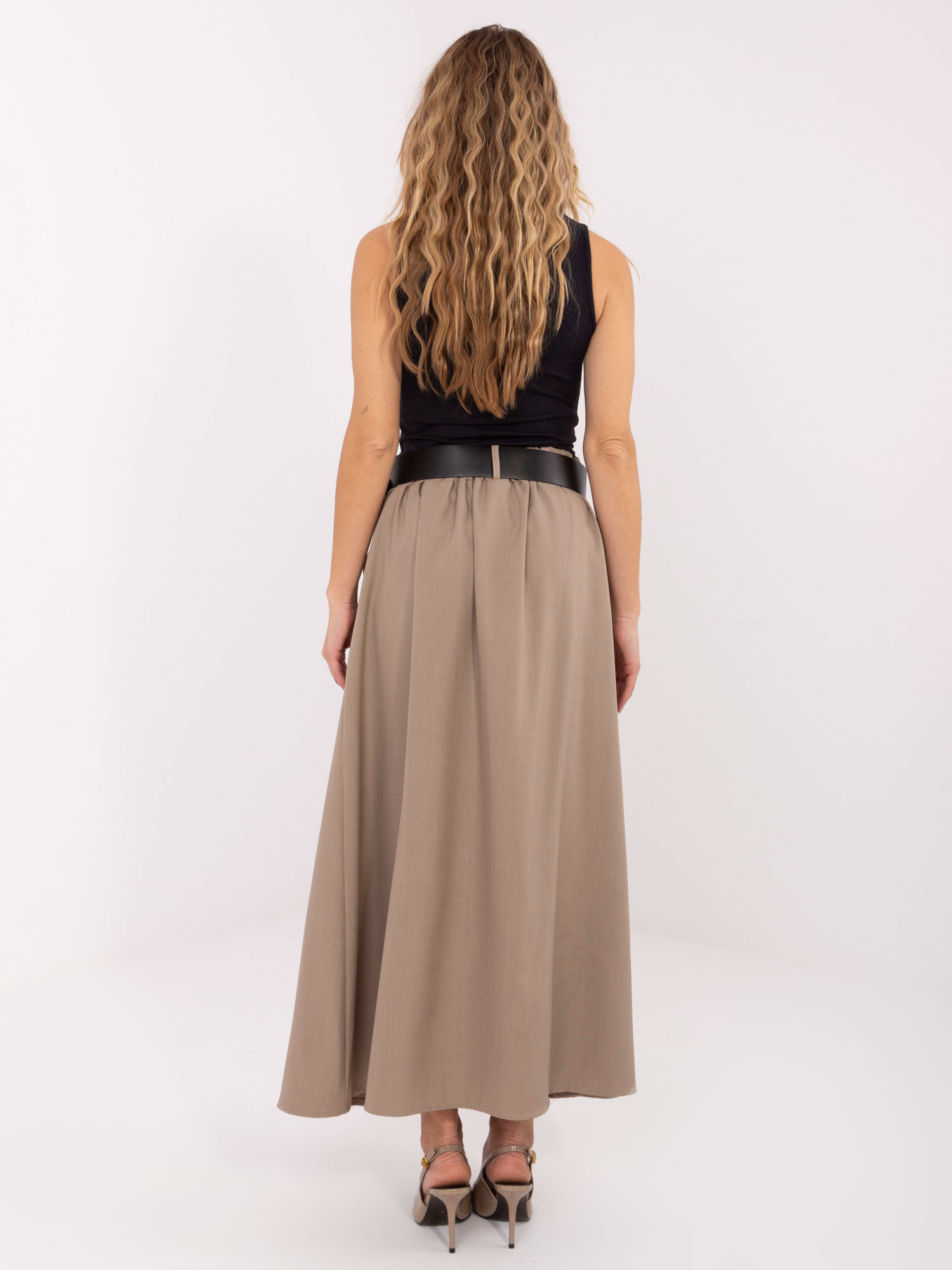Ez az elegáns megjelenésű, maxi hosszúságú szoknya kifinomult és nőies darab, amely kiválóan alkalmas hétköznapi viseletre, munkába vagy akár elegánsabb alkalmakra is. A letisztult, egyszínű kialakítás időtálló stílust képvisel, a világossárga árnyalat friss és üde megjelenést kölcsönöz. A deréknál elhelyezett öv szépen hangsúlyozza az alakot, míg az oldalzsebek praktikus részletként növelik a komfortérzetet. A maxi hossz elegáns esést biztosít, a rugalmas anyagösszetétel pedig kényelmes viseletet nyújt egész nap.