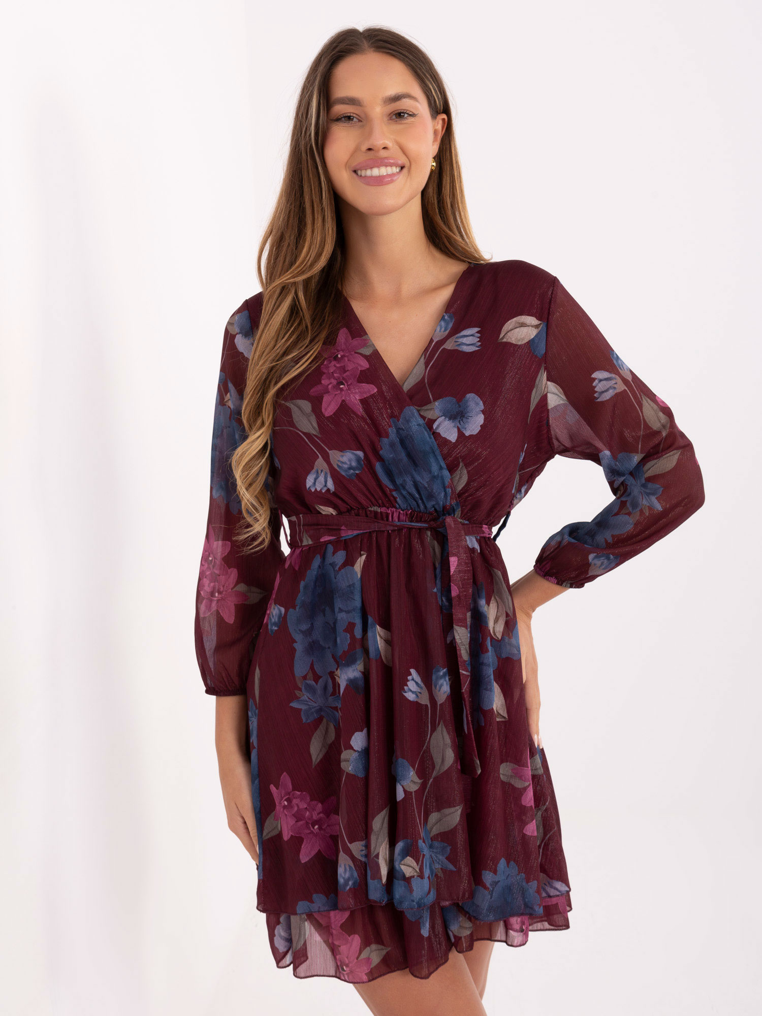 Bordó virágmintás mini ruha
