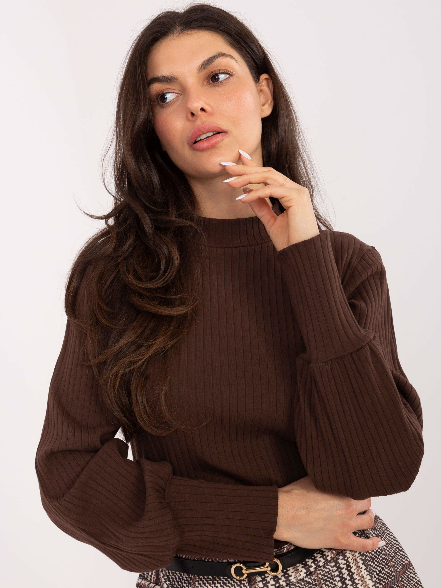 Buggyos ujjú barna bordázott felső