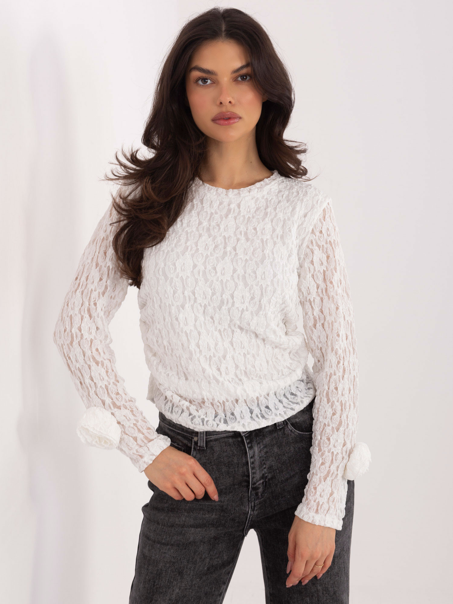 A hosszú ujjú fazon és a klasszikus kerek nyakkivágás elegáns és sokoldalú viseletet eredményez, amely ideális választás ünnepi eseményekre, munkába vagy esti programokra. A derékrészen és az ujjakon megjelenő finom ráncolások tovább fokozzák a nőies hatást, miközben a rövid fazon könnyedén kombinálható szoknyákkal és nadrágokkal is.