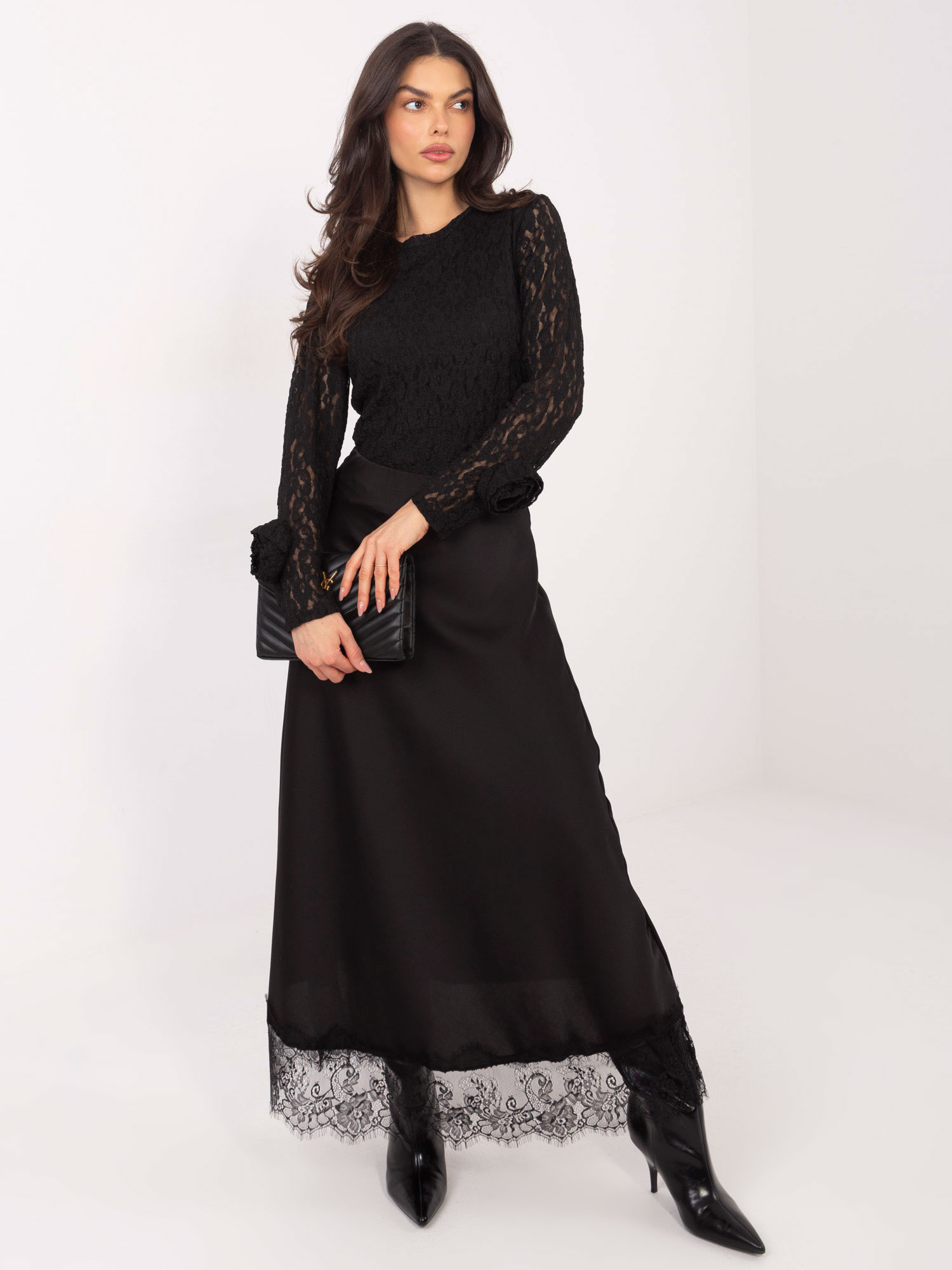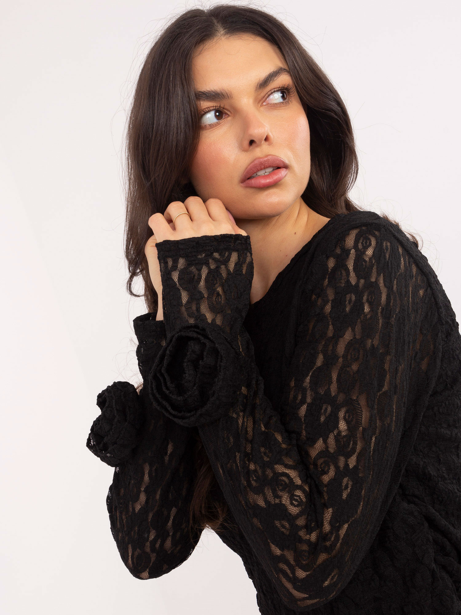 Csipkés fekete blúz virággal