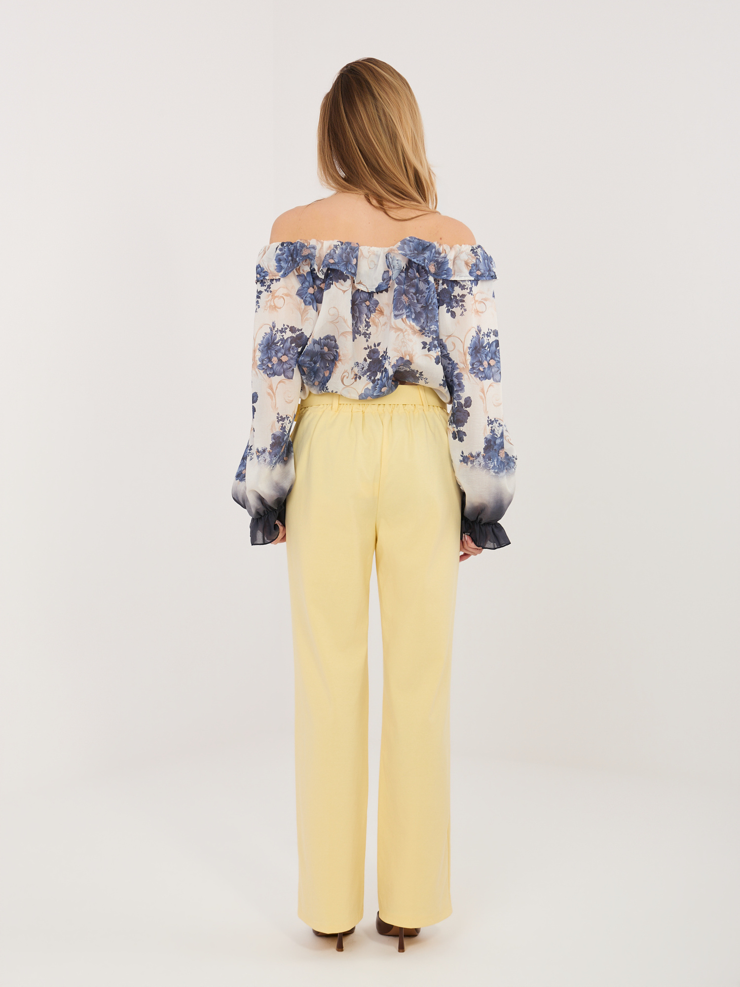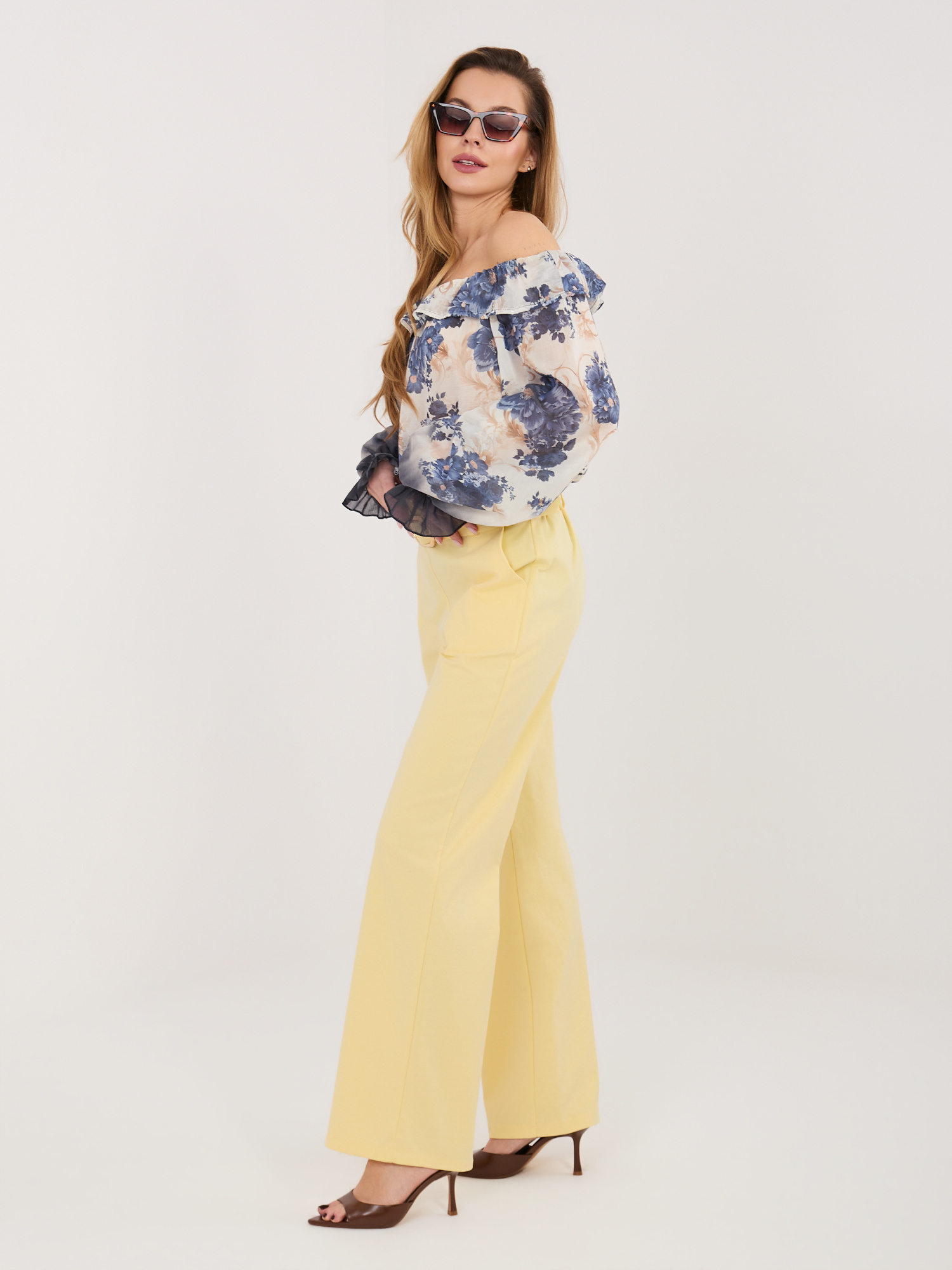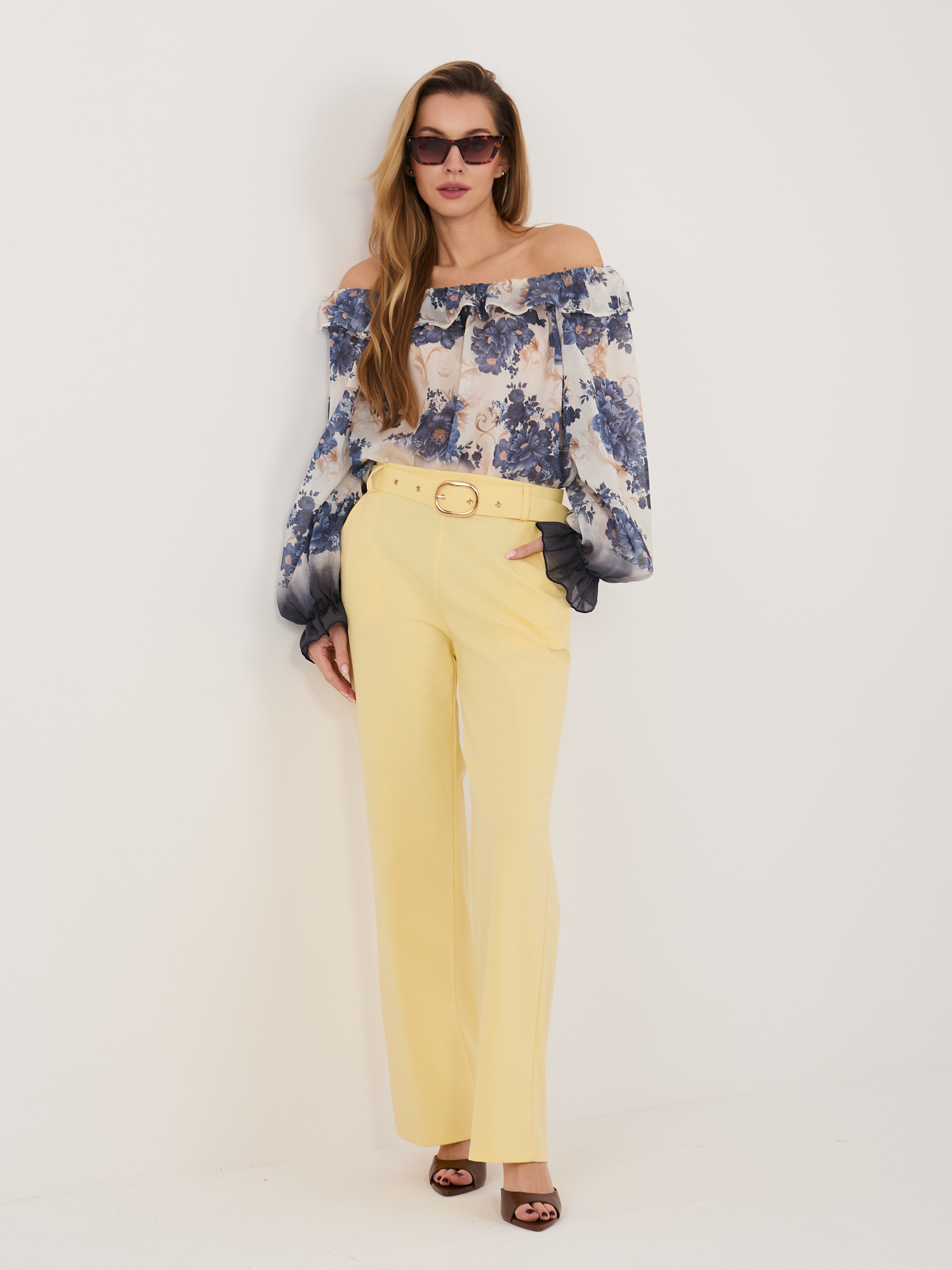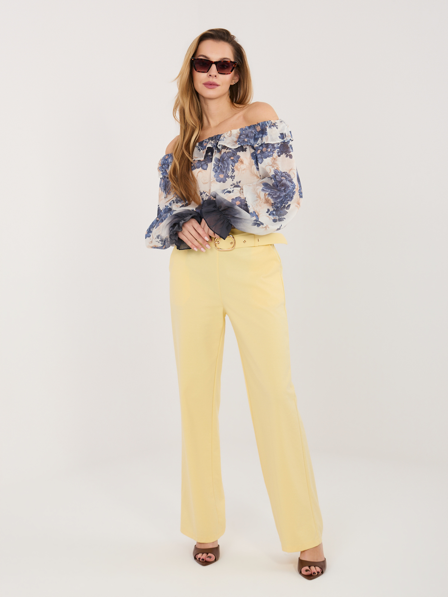 Egyenes szárú sárga nadrág övvel