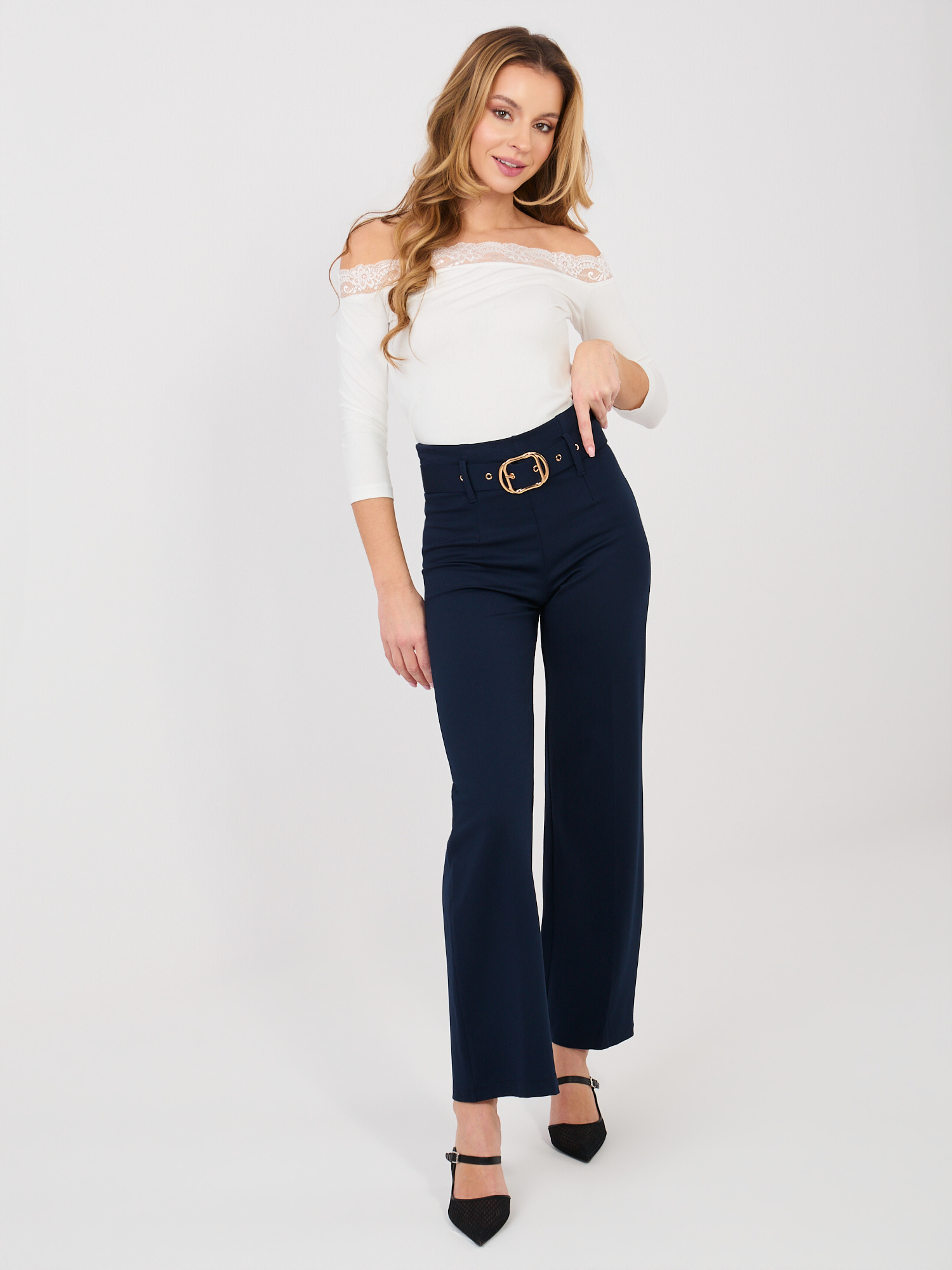 Az elegáns, testhezálló blúz finoman hangsúlyozza az alakot, miközben kényelmes viselet marad a rugalmas, pamutban gazdag anyagának köszönhetően. A spanyol vállmegoldás nőies és kifinomult megjelenést ad, szépen kiemeli a vállvonalat és a dekoltázst, a 3/4-es ujjak pedig praktikusak és egész napos viselésre is ideálissá teszik. A csipkés részletek romantikus hangulatot csempésznek az összhatásba, így a modell tökéletes választás hétköznapokra és munkahelyi szettekhez is. Letisztult szabásának köszönhetően nadrággal és szoknyával egyaránt könnyen kombinálható, így sokoldalú alapdarab a gardróbban.
