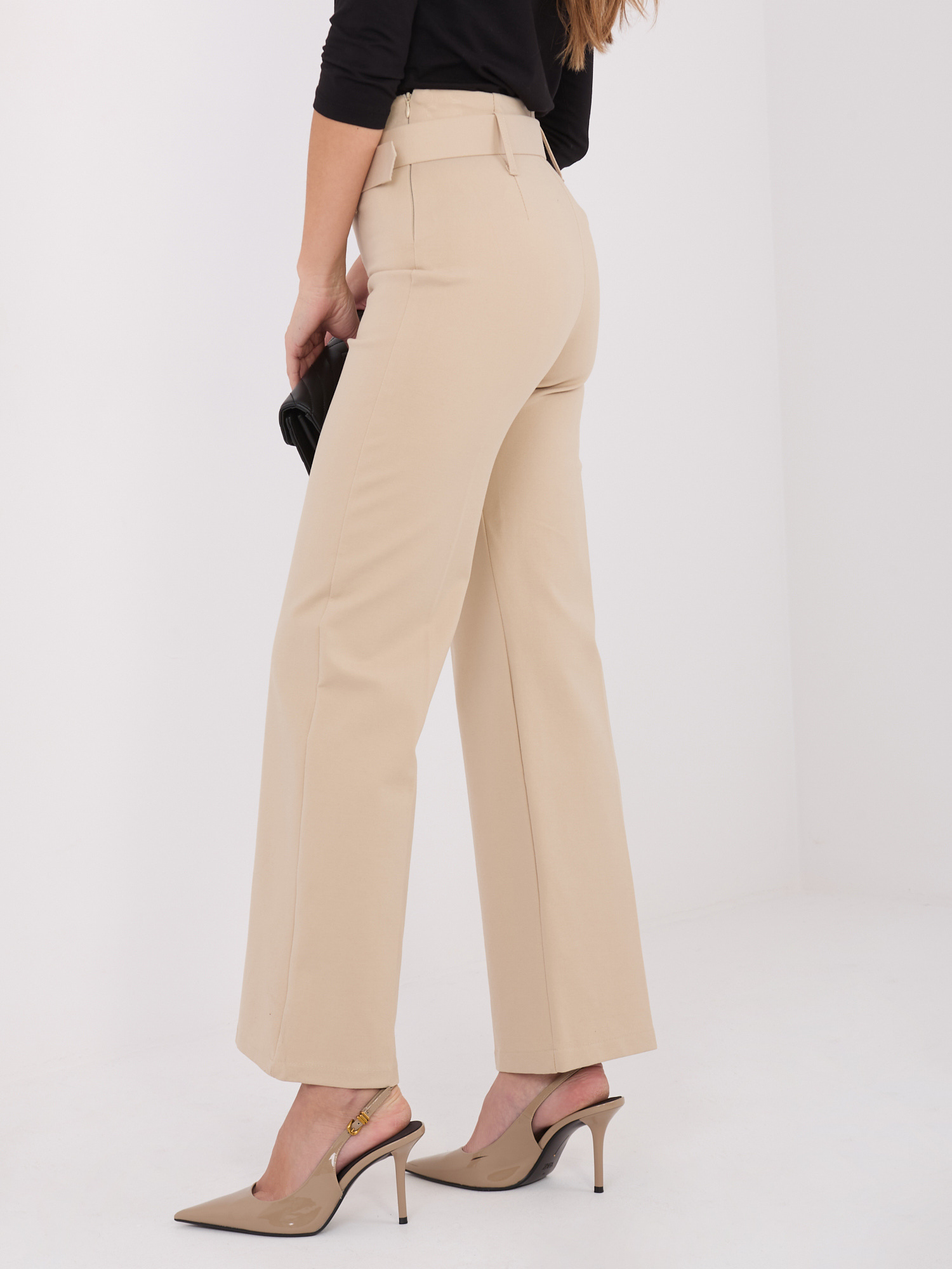 A bézs színű, elegáns anyagból készült női egyenes szárú nadrág stílusos és kifinomult megjelenést biztosít a mindennapokban, munkahelyi viseletként vagy akár alkalmi összeállítások részeként is. A magas derékrész kényelmes tartást ad, miközben szépen formálja a sziluettet. A nadrág sima felülete letisztult hatást kelt, a vasalt él pedig még elegánsabb megjelenést nyújt. A hozzá tartozó öv tovább erősíti a csinos, nőies összhatást. A nadrág elöl cipzárral záródik, viszkóz–nylon–elasztán anyagösszetétele pedig kellemes tapintást, légáteresztést és kényelmes rugalmasságot biztosít. A klasszikus, egyenes szár bármilyen cipővel jól mutat, így könnyen beilleszthető bármely ruhatárba.
