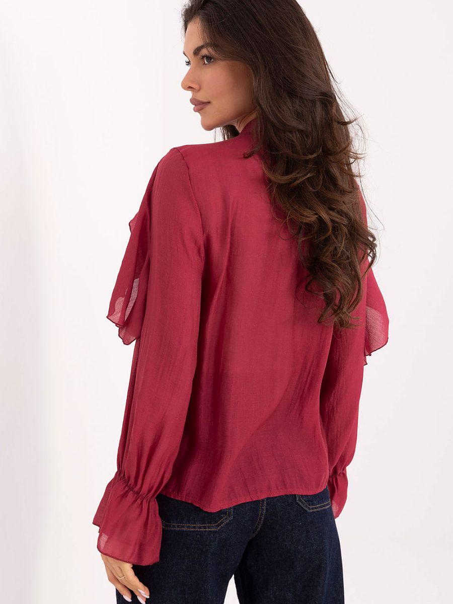 RUE PARIS elegáns fodros ing kifinomult választás mindennapi, munkahelyi vagy alkalmi viselethez. Klasszikus szabása, V-alakú nyakkivágása és dekoratív fodros díszítése nőies, elegáns megjelenést biztosít. A hosszú ujjú, gombos kialakítás kényelmes és stílusos, a lyocell és poliészter keverékének köszönhetően pedig kellemes tapintású, könnyű és jól szellőző anyagból készült.