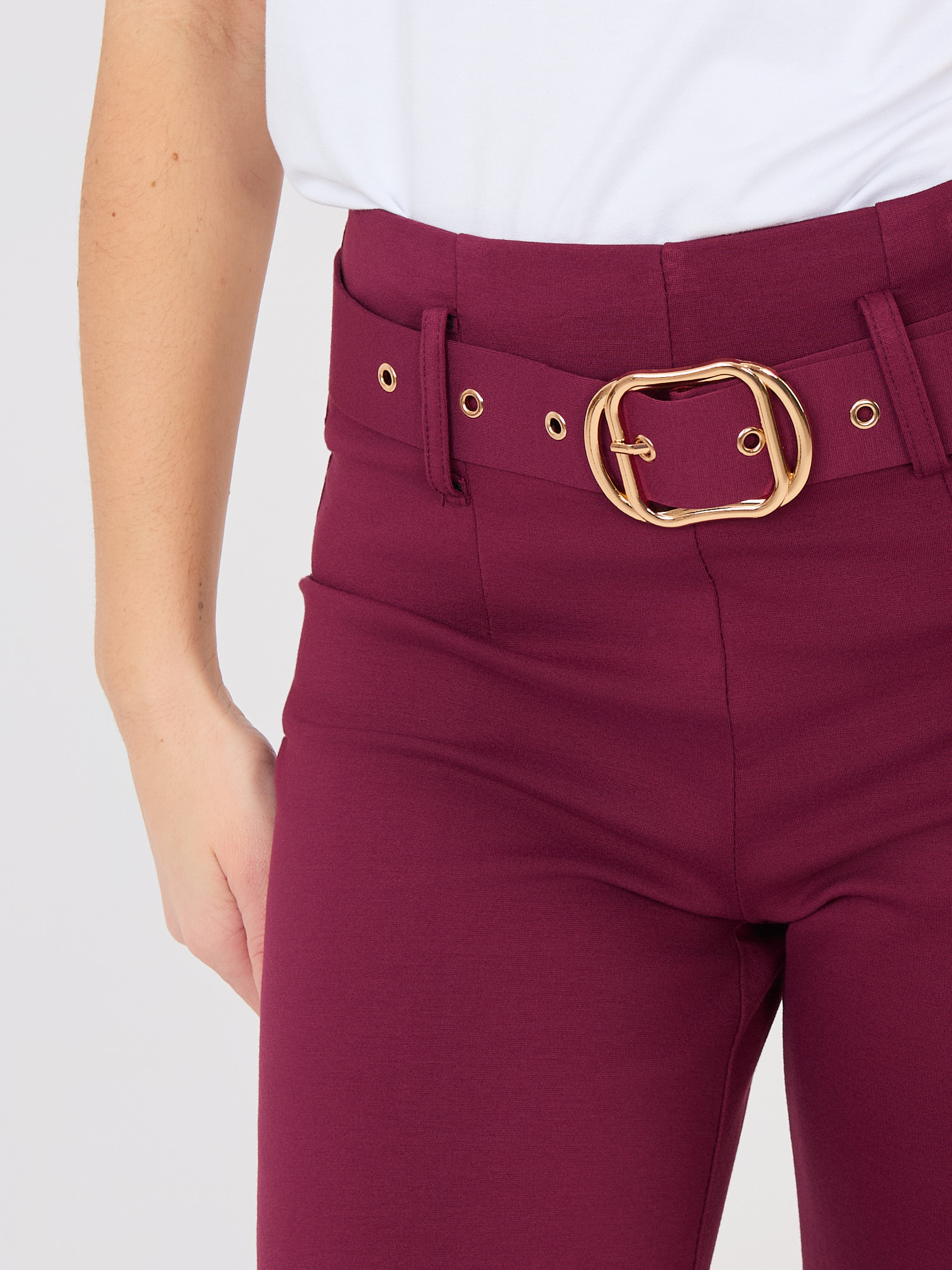 Ez az elegáns anyagból készült női egyenes szárú nadrág stílusos és kifinomult megjelenést biztosít a mindennapokban, munkahelyi viseletként vagy akár alkalmi összeállítások részeként is. A magas derékrész kényelmes tartást ad, miközben szépen formálja a sziluettet. A nadrág sima felülete letisztult hatást kelt, a vasalt él pedig még elegánsabb megjelenést nyújt. A hozzá tartozó öv tovább erősíti a csinos, nőies összhatást. A nadrág elöl cipzárral záródik, viszkóz–nylon–elasztán anyagösszetétele pedig kellemes tapintást, légáteresztést és kényelmes rugalmasságot biztosít. A klasszikus, egyenes szár bármilyen cipővel jól mutat, így könnyen beilleszthető bármely ruhatárba.
