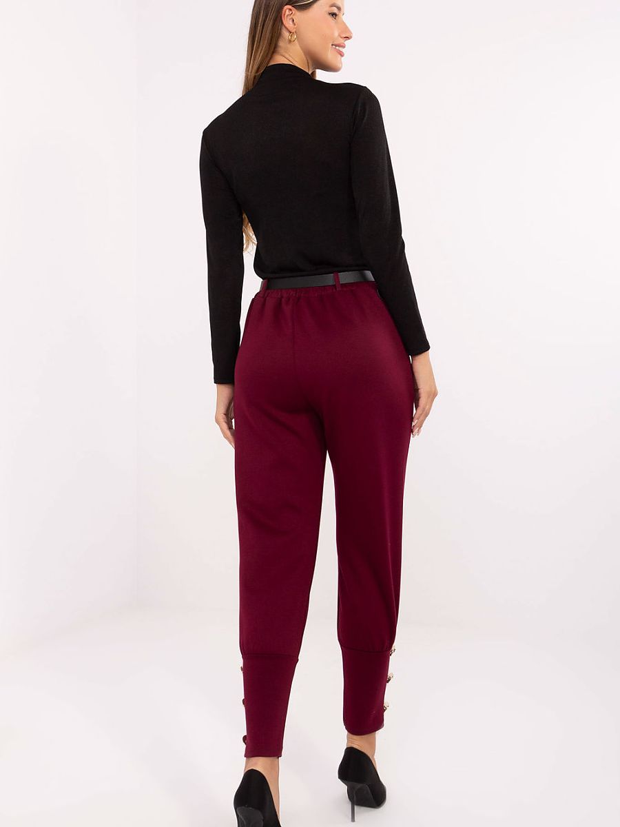 Ez a Factory Price női szabadidőnadrág a kényelem és a nőies stílus tökéletes ötvözete. Magas derekú, enyhén szűkülő szárú fazonja előnyösen formálja az alakot, miközben modern és letisztult megjelenést biztosít. A sima, kellemes tapintású anyag, az oldalzsebek és a derékövet díszítő gombok együtt igazán praktikus, ugyanakkor csinos megjelenést eredményeznek. Ideális választás mindennapi viseletre, munkába vagy kényelmes szabadidős programokra.