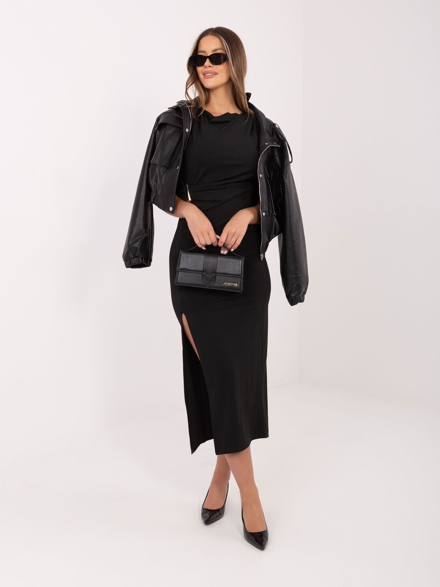 A RUE PARIS elegáns midi ruhája letisztult, mégis nőies választás, amely tökéletesen illeszkedik a mindennapi és alkalmi megjelenéshez is. A testhezálló szabás szépen követi a sziluettet, miközben a ráncolt részletek finoman formálják az alakot és kiemelik a derekat.