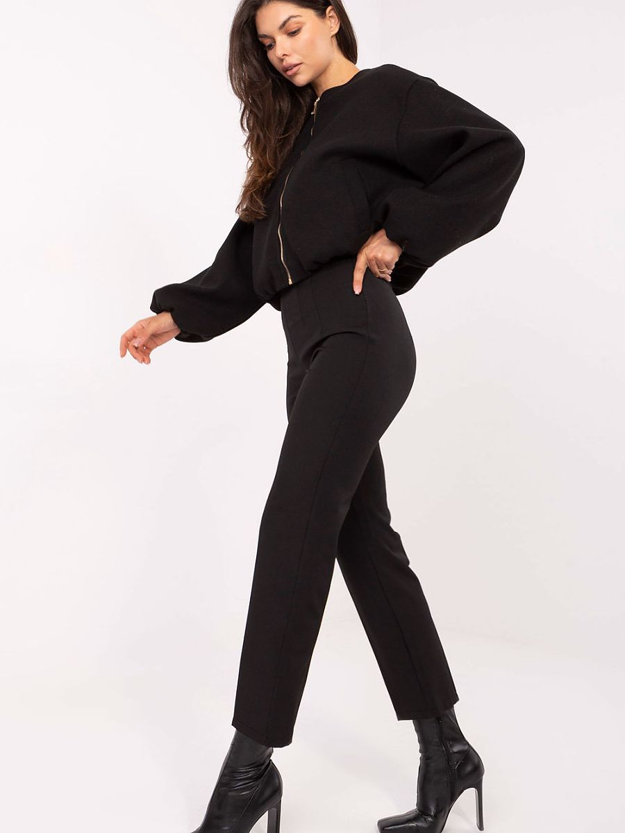 A RUE PARIS elegáns, karcsúsított fazonú nadrágja remek választás a mindennapokra, munkába és alkalmi megjelenésekhez. Magasított derékkialakítása szépen kiemeli az alakot, a szűk szárú szabás pedig optikailag nyújtja a lábakat, így kifinomult és nőies sziluettet biztosít. Az egyszínű, letisztult design sokoldalúan kombinálható – tökéletesen mutat blúzzal, inggel vagy elegáns zakóval.
