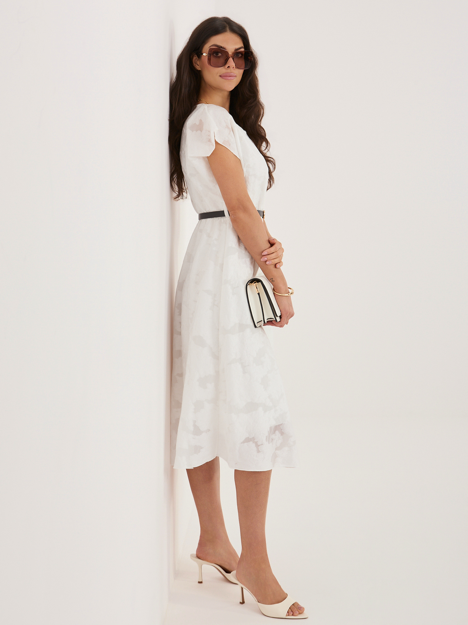 Fehér alkalmi ruha övvel