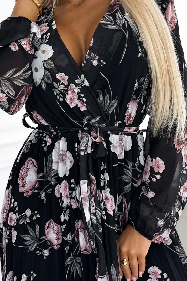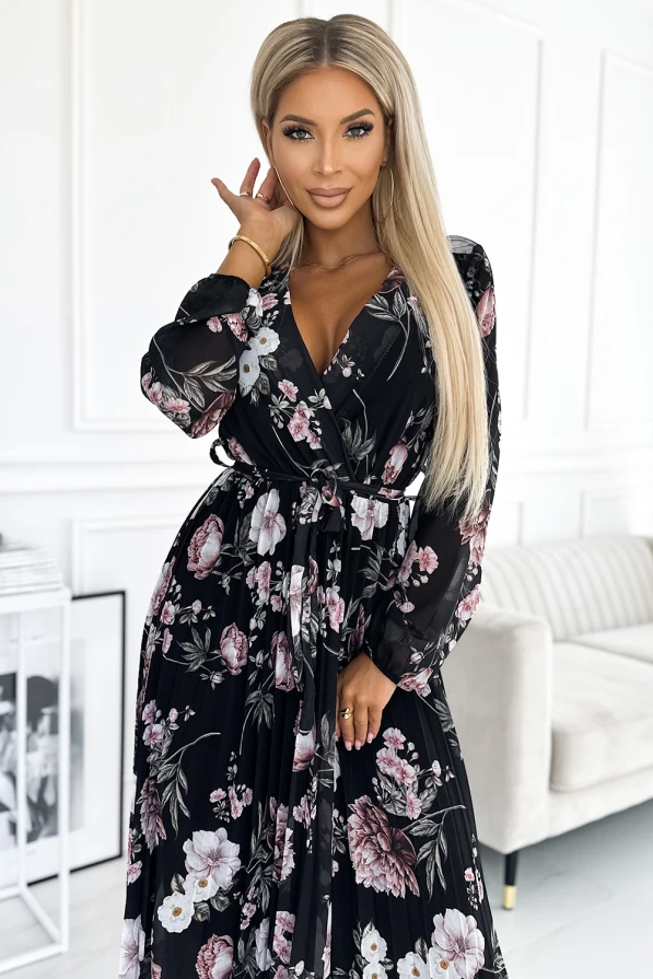 Fekete plisszés virágos ruha