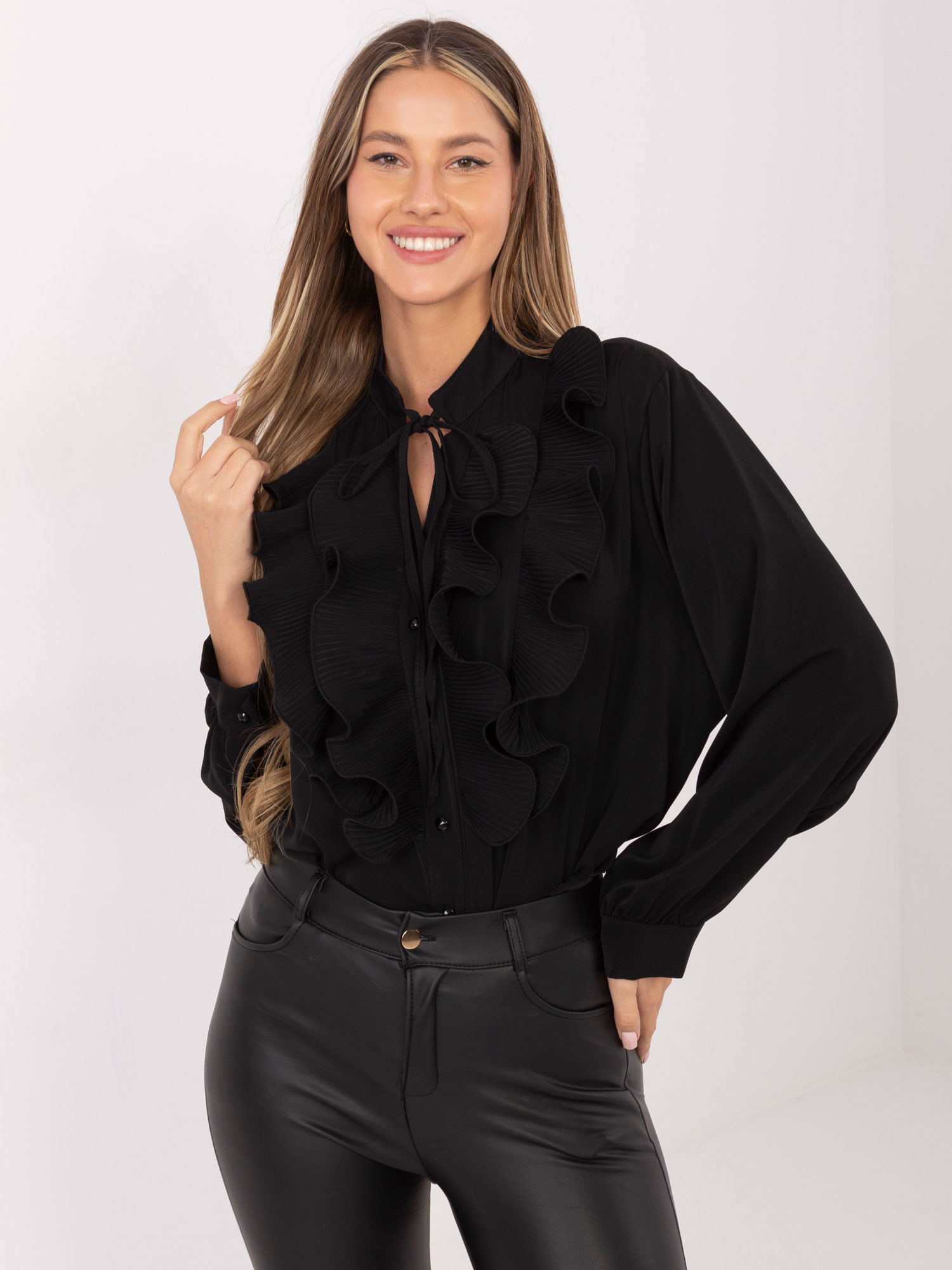 A RED LINE klasszikus, elegáns ingje tökéletes választás mindennapi viselethez, munkába vagy akár alkalmi megjelenéshez is. A sima felületű, lágy esésű anyag nőies és kifinomult hatást kelt, miközben a finoman puffos ujj és a megkötős nyakkivágás különleges részletekkel gazdagítja a fazont. A szabás kényelmes és lezser, mégis elegáns vonalakat rajzol, így könnyen kombinálható szoknyával, nadrággal vagy elegáns kiegészítőkkel.