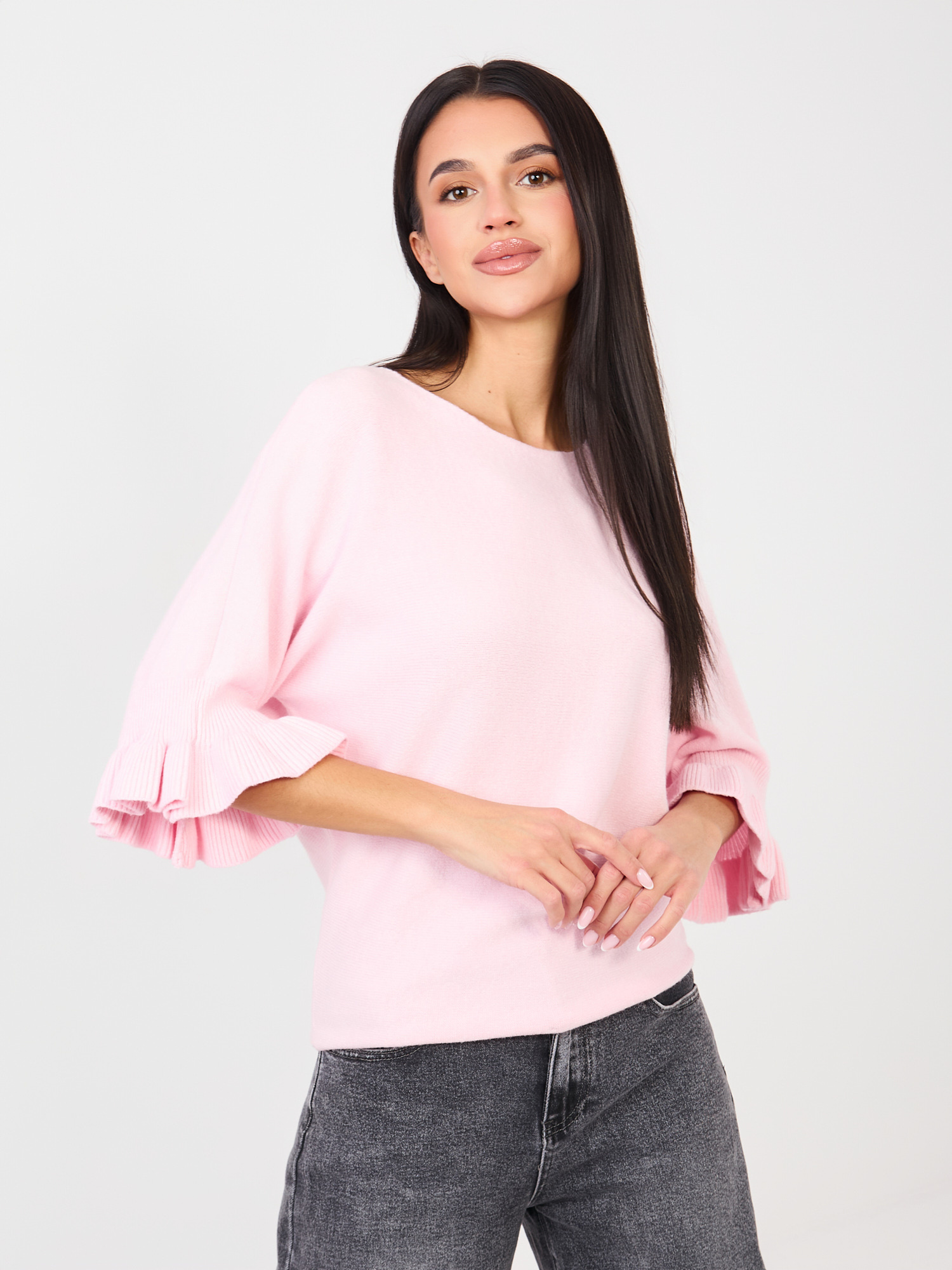 Fodros ujjú világos pink pulóver