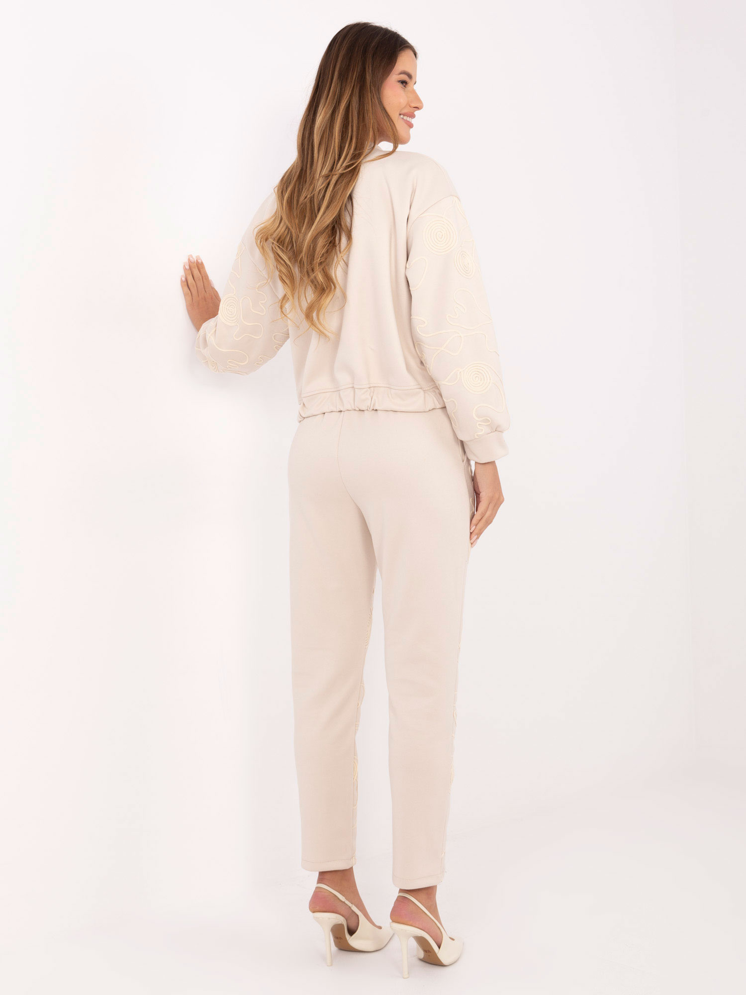Ez a kétrészes szett – pulóver és nadrág a casual stílust és a kényelmet ötvözi, így tökéletes választás a mindennapokra. A pulóver hosszú ujjú, állónyakú, hímzett részletekkel díszített, míg a nadrág magas derekú, szűkített szárú, oldalzsebekkel kiegészítve. A puha, minőségi anyag – 70% viszkóz és 30% poliészter – kényelmes viseletet biztosít egész nap.
