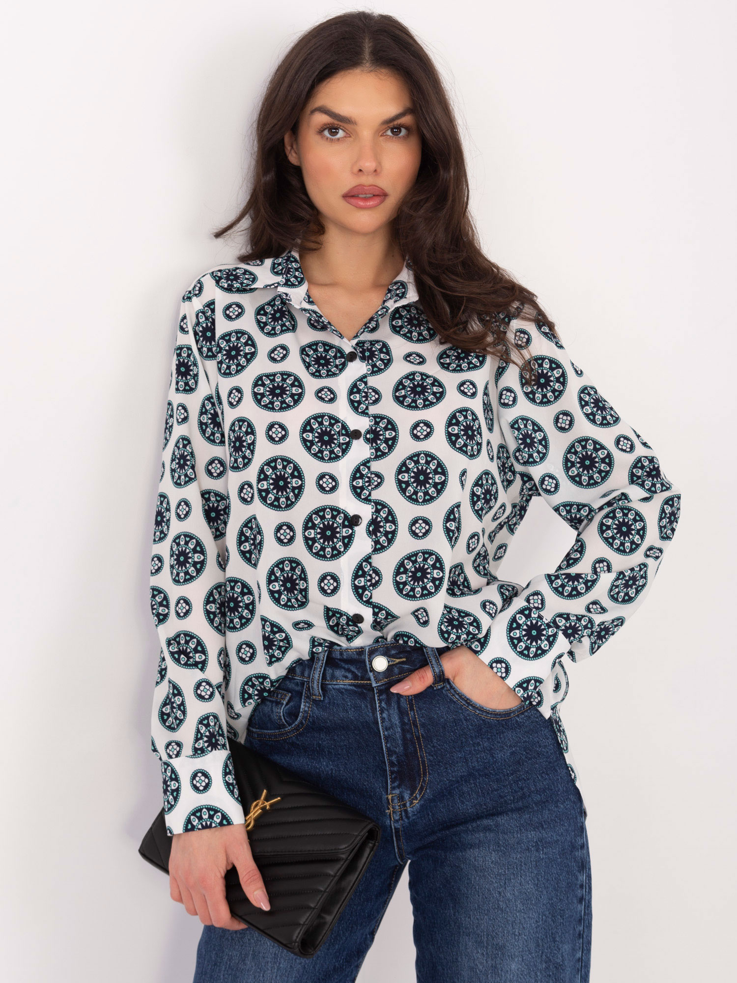 A LAKERTA klasszikus kialakítású, elegáns ingje könnyed viselet a mindennapokhoz és a munkahelyi megjelenéshez. A lágy esésű, rugalmas poliészter–elasztán anyag kényelmes, szépen követi a test vonalát, a hosszított hátrész pedig előnyös, nőies sziluettet ad. A gallér és a gombolás visszafogott eleganciát kölcsönöz, míg a finom mintázat különlegessé teszi a darabot.