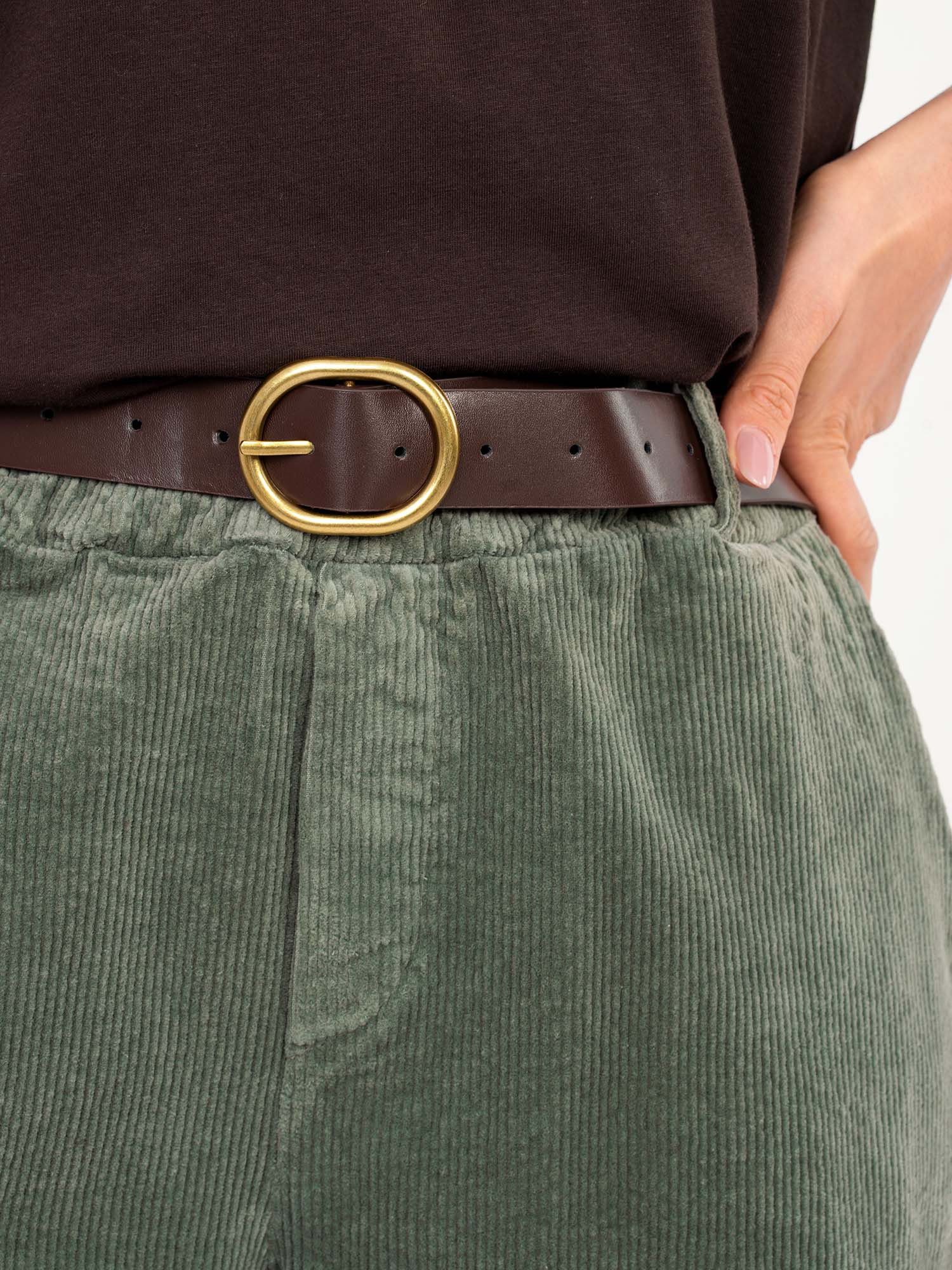 Keki pamut hatású nadrág övvel
