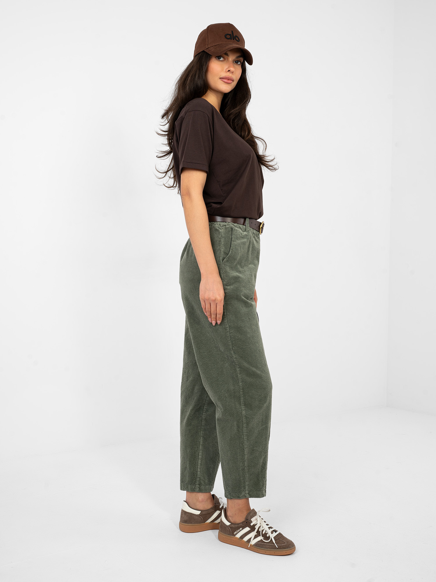 Ez a nadrág kényelmes és modern választás a hétköznapokra és munkába egyaránt. A magas derekú kialakítás szépen formálja a derékvonalat, miközben komfortos viseletet biztosít egész nap. A lefelé szűkülő szár és a 7/8-os hossz divatos, letisztult megjelenést ad, amely sportos és nőies szettekhez is jól illeszkedik. Az oldalzsebek praktikusak, a nadrághoz tartozó öv pedig tovább hangsúlyozza az alakot. A pamut alapanyag elasztánnal kiegészítve rugalmas, kellemes tapintású és jól alkalmazkodik a mozgáshoz.