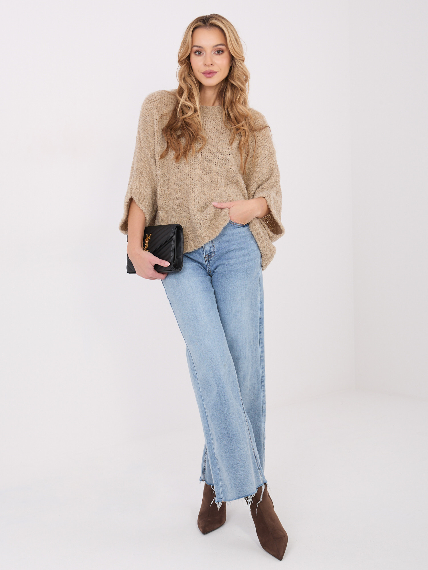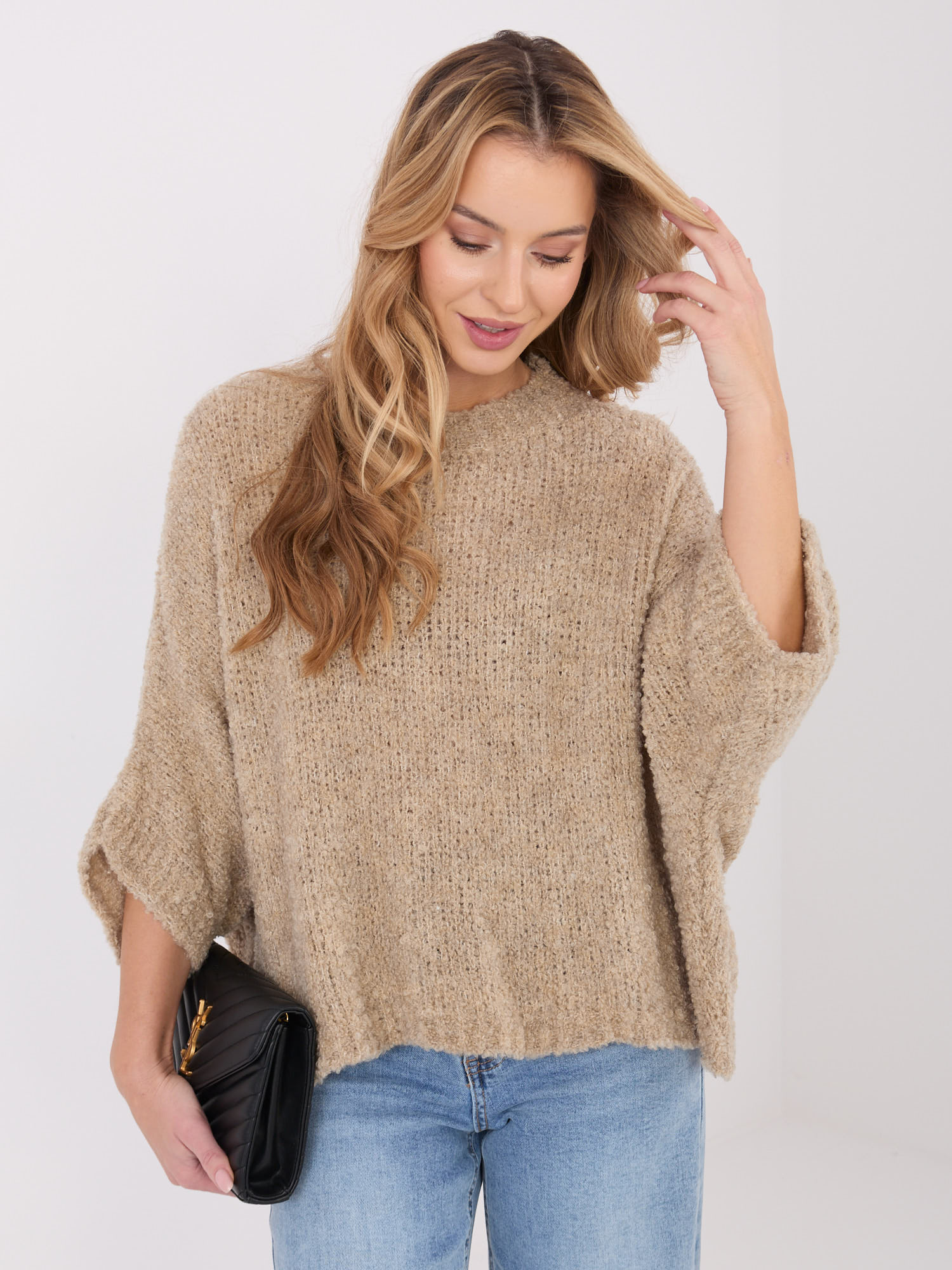 Kényelmes sötét bézs kötött pulóver