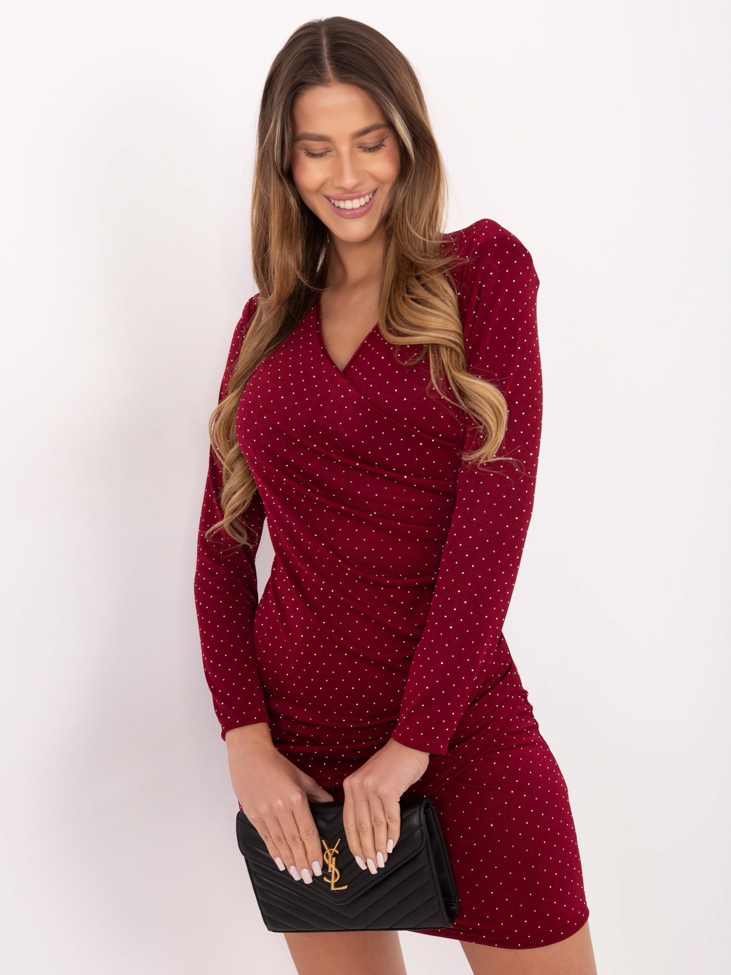 A ruha hosszú ujjú kialakítása elegánsabbá teszi az összhatást, a csípőnél és deréknál elhelyezett ráncolás pedig optikailag karcsúsít, finoman elfedve az apróbb vonalakat. A mini hossz nőies és fiatalos, ugyanakkor rendkívül ízléses megjelenést biztosít. A díszköves részletek különleges, egyedi fényt adnak a ruhának.
