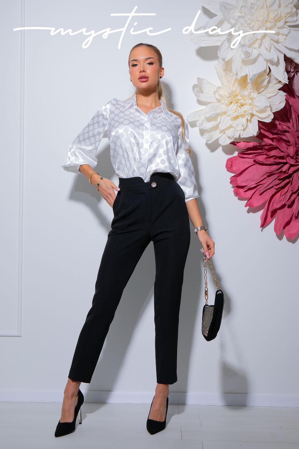 Ez a fehér színű Mystic Day felső elegáns, mégis kényelmes darab, amely könnyedén beilleszthető a mindennapi és az alkalmi összeállításokba is. Anyagába nyomott, finom pöttyös mintája visszafogott különlegességet ad a megjelenésnek, míg a galléros, elöl gombos kialakítás nőies és rendezett hatást kelt. A 67% pamut és 33% poliészter összetételű anyag kellemes viseletet és jó tartást biztosít egész nap.