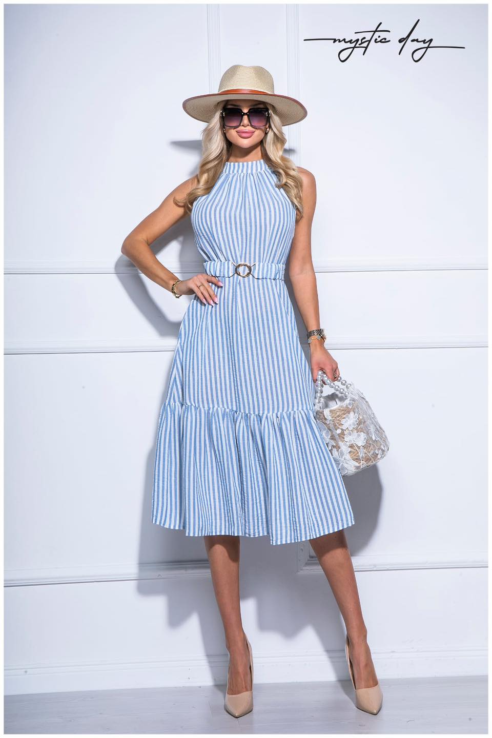 Mystic Day Katreina világoskék csíkos ruha