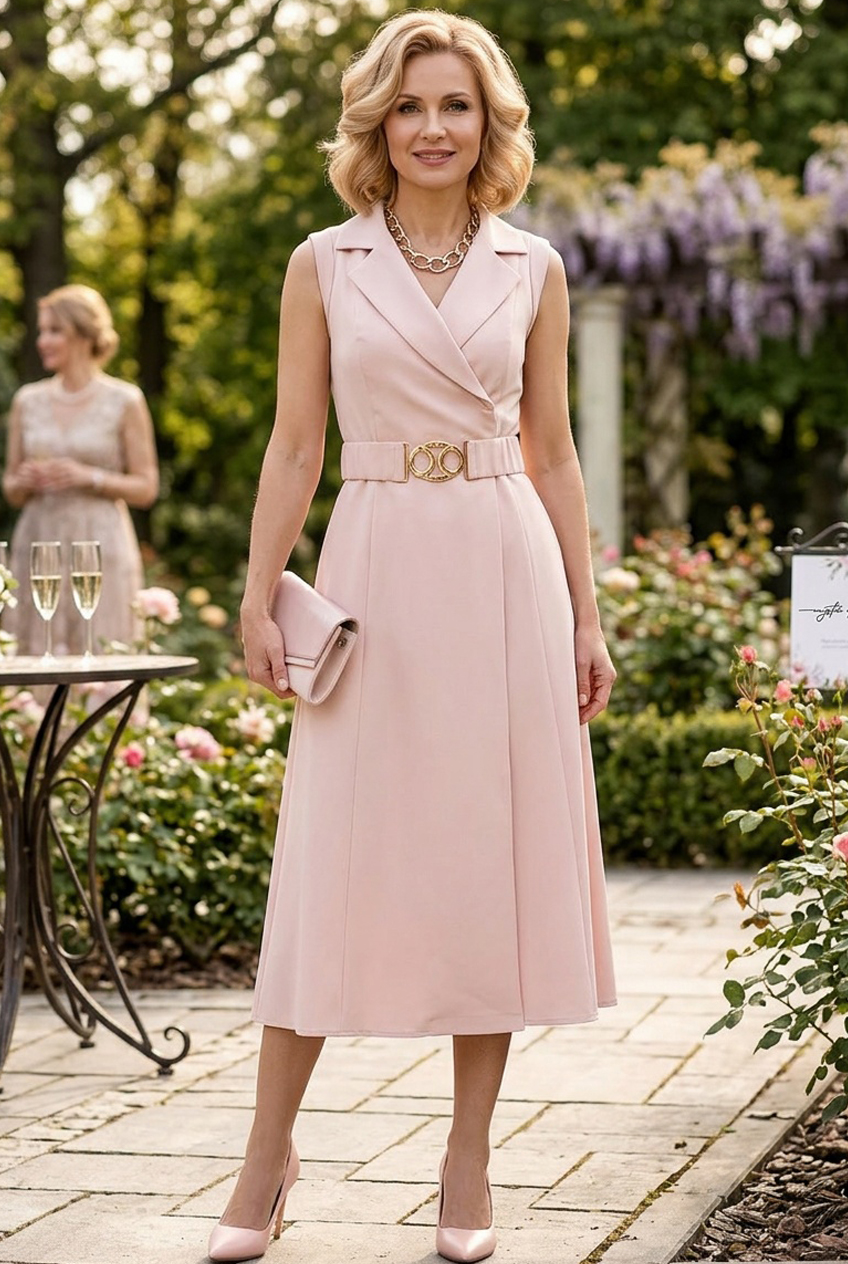 A deréknál elhelyezett öv hangsúlyozza a sziluettet, a bővülő szoknyarész pedig lágy esésével nőies, harmonikus megjelenést biztosít. Az összhatás egyszerre klasszikus és modern, így ideális választás, ha egy sokoldalú, elegáns darabot keresel, amely könnyedén beilleszthető egy stílusos gardróbba.
