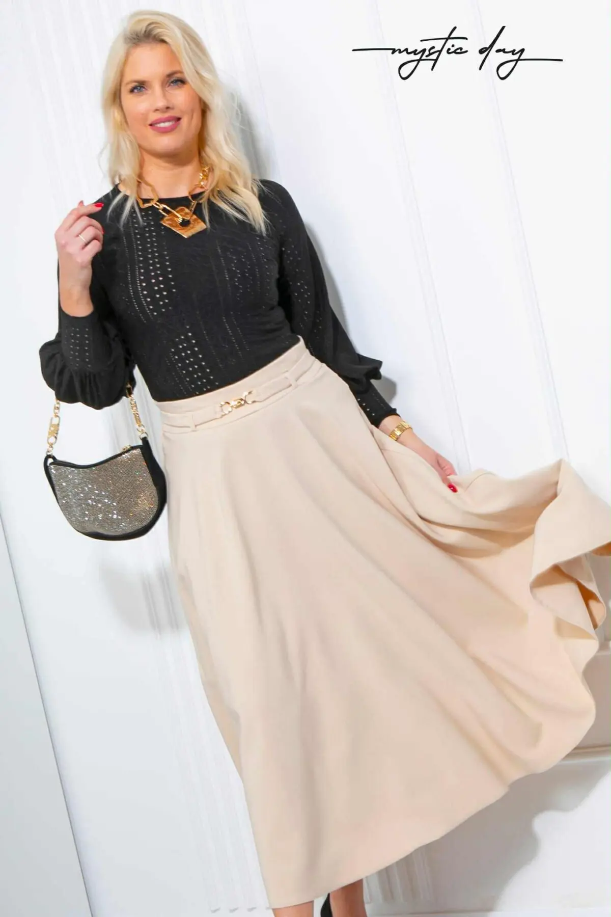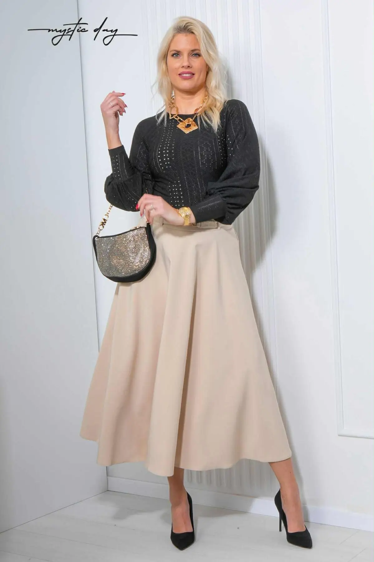 Nőies és romantikus felső, amely különleges megjelenést ad bármilyen összeállításnak. A látványos ujjmegoldás és a finoman áttört anyag együtt könnyed, elegáns hatást kelt, így hétköznapokra és alkalmi viselethez egyaránt ideális.