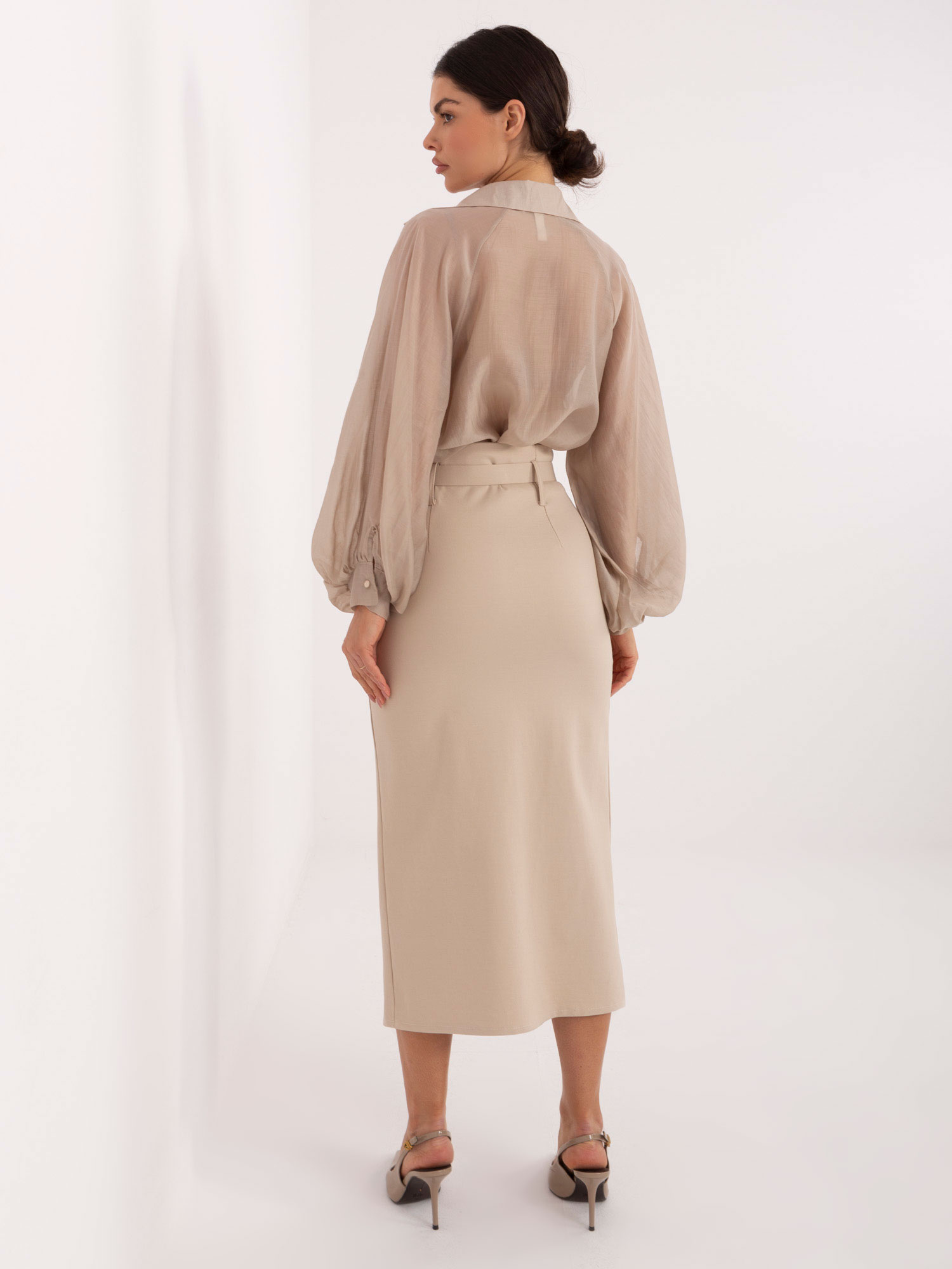 A midi hossz különösen elegáns és időtálló, miközben kényelmes viselet marad akár egész napos programok során is. A hátsó cipzár egyszerű felvételt tesz lehetővé, és biztos tartást ad viselés közben.