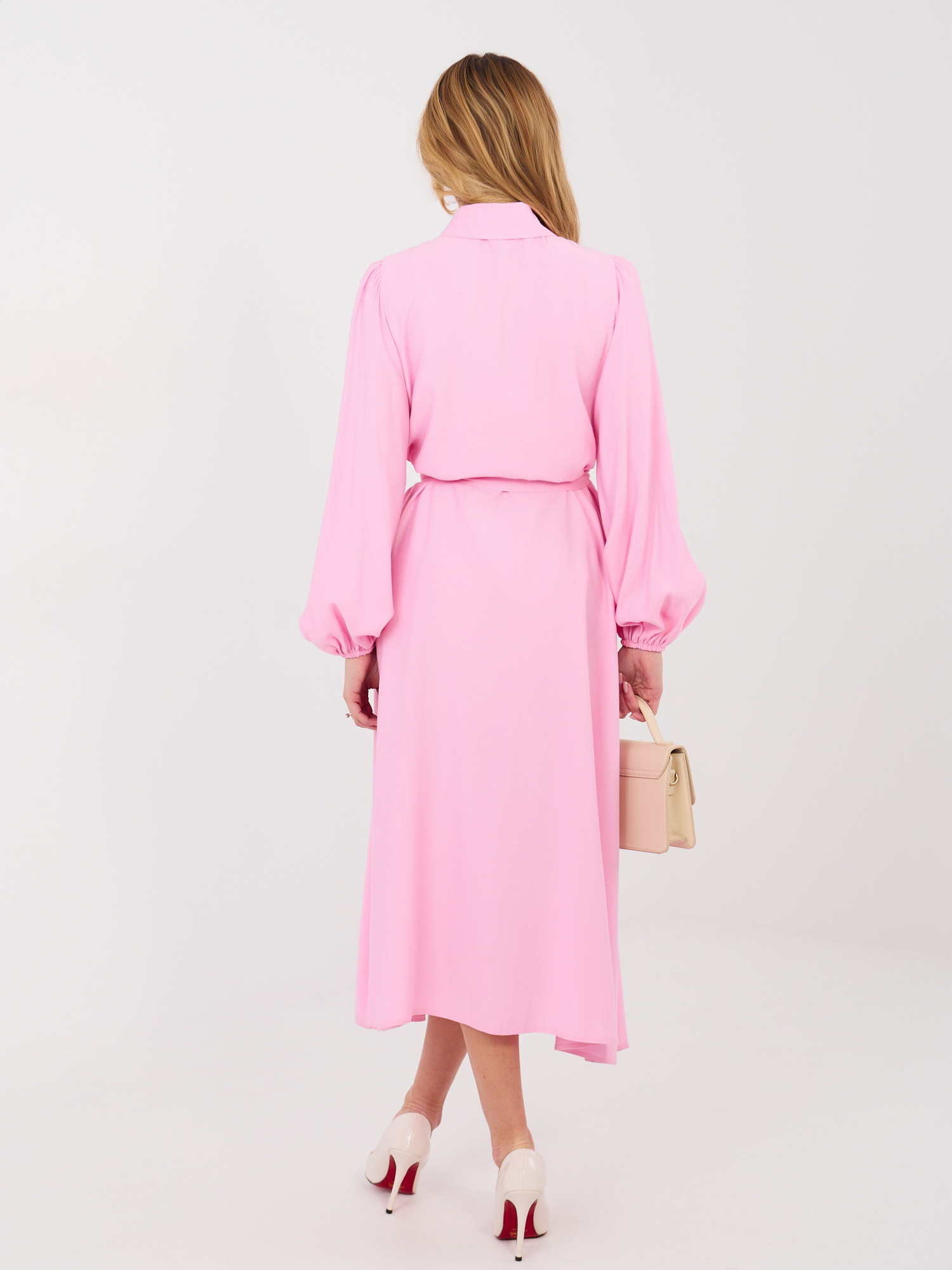 Ez a nőies és sokoldalúan viselhető ingruha tökéletes választás a mindennapokra, munkába vagy akár elegánsabb alkalmakra is. A midi hosszúság és az enyhén bővülő fazon kényelmes mozgást biztosít, miközben szép, harmonikus sziluettet formál. A klasszikus galléros nyakkivágás és az elöl végig gombos kialakítás időtálló megjelenést ad, amelyet a deréknál megkötős öv tesz igazán nőiessé. A finoman puffos ujjak különleges részletként emelik ki a ruhát, míg a pamut–viszkóz–elasztán anyagösszetétel kellemes viseletet és jó rugalmasságot biztosít egész nap.