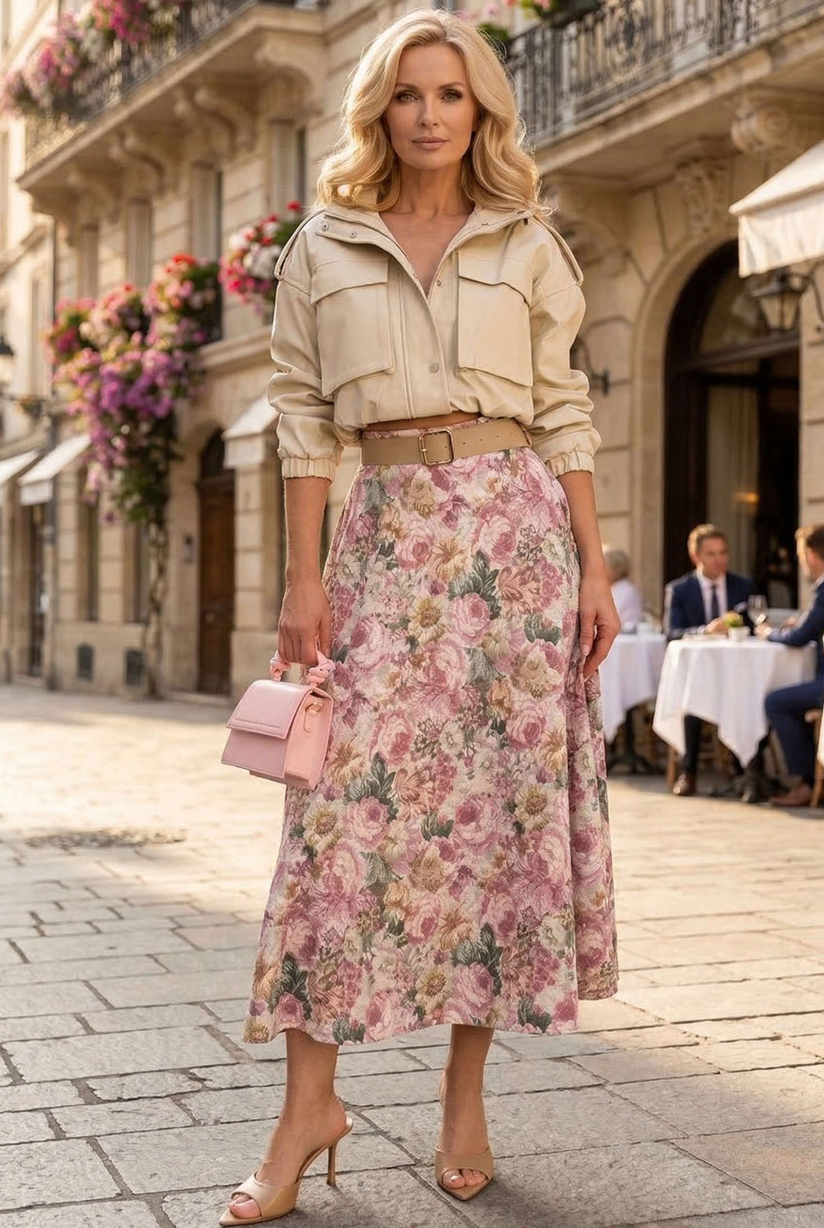 A RUE PARIS virágmintás midi szoknyája nőies és elegáns darab, amely tökéletes választás mindennapi, munkahelyi vagy alkalmi megjelenéshez. A finom mintázat friss és kifinomult hatást kelt, míg a midi hossz klasszikus és időtálló megjelenést biztosít.