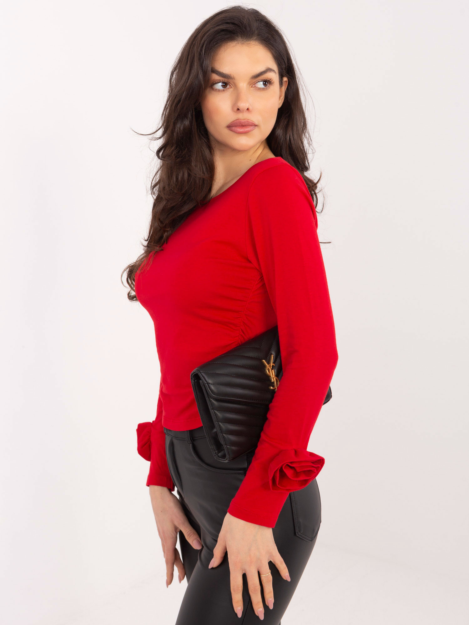 ITALY MODA nőies, letisztult, rövid fazonú, hosszú ujjú, testhez simuló felsője könnyed, mindennapi viseletre készült. A puha, teljes egészében pamut anyag természetes kényelmet ad, miközben a finom ráncolások elegáns részletként emelik ki a derékvonalat. A kényelmes szabás miatt farmerrel és szoknyával is harmonikusan mutat.