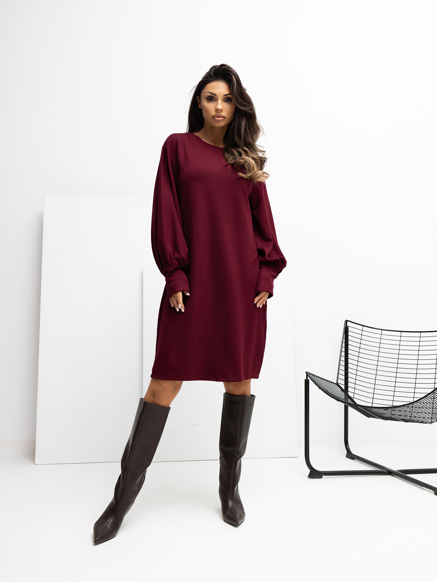 Ez a letisztult vonalvezetésű, mégis különleges részletekkel ellátott ruha ideális választás a hétköznapokra és munkába egyaránt. Az egyenes szabás kényelmes viseletet biztosít, miközben a térd fölé érő hossz elegáns megjelenést ad. A hosszú, enyhén puffos ujjak nőies karaktert kölcsönöznek a ruhának, a kerek nyakkivágás pedig időtálló, könnyen kombinálható stílust teremt. A puha tapintású, rugalmas viszkóz–elasztán anyag jól alkalmazkodik a test vonalaihoz, egész napos komfortérzetet biztosítva. Záródás nélküli kialakítása praktikus és letisztult összhatást eredményez.