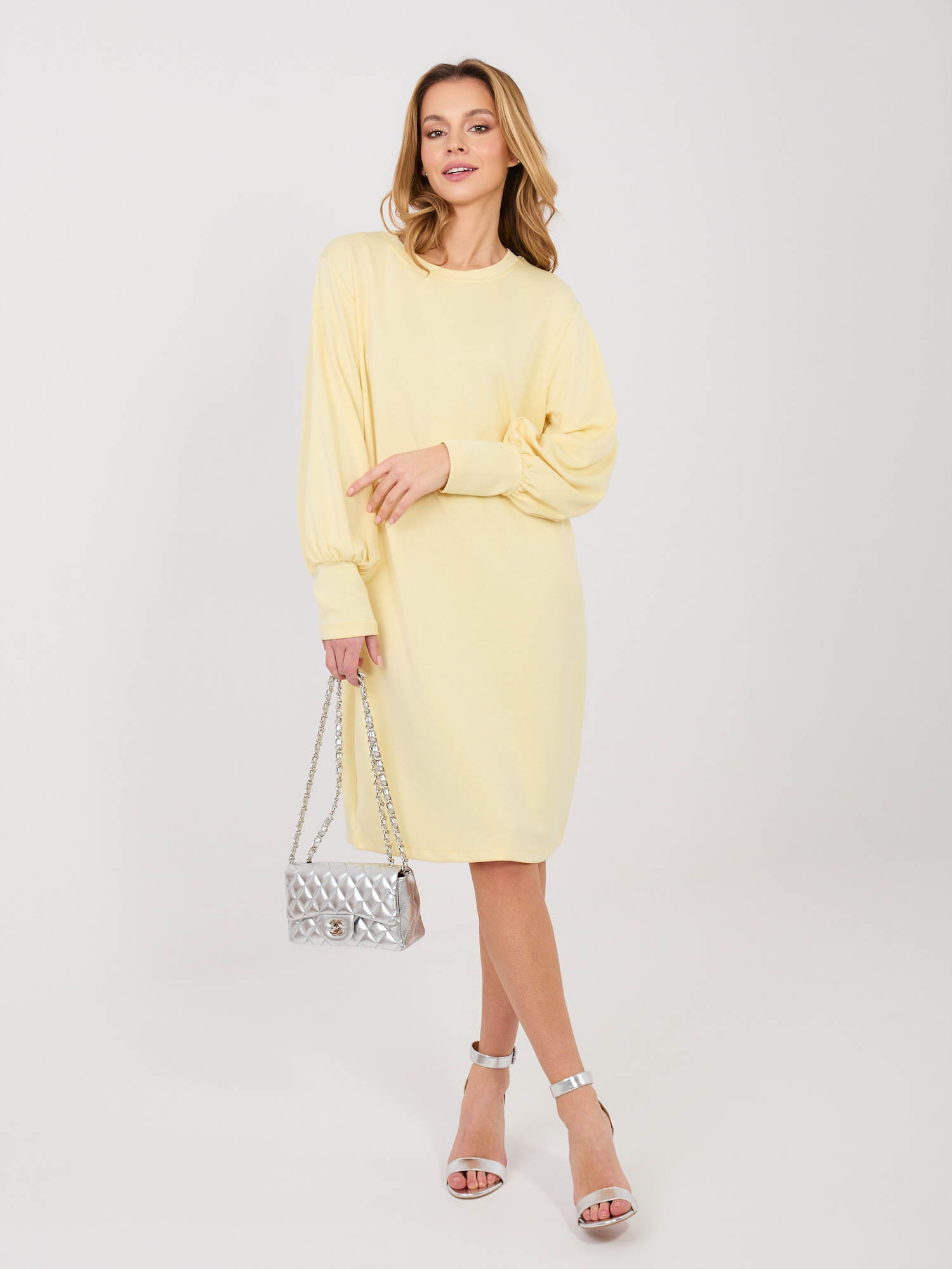 Ez a letisztult vonalvezetésű, mégis különleges részletekkel ellátott ruha ideális választás a hétköznapokra és munkába egyaránt. Az egyenes szabás kényelmes viseletet biztosít, miközben a térd fölé érő hossz elegáns megjelenést ad. A hosszú, enyhén puffos ujjak nőies karaktert kölcsönöznek a ruhának, a kerek nyakkivágás pedig időtálló, könnyen kombinálható stílust teremt. A puha tapintású, rugalmas viszkóz–elasztán anyag jól alkalmazkodik a test vonalaihoz, egész napos komfortérzetet biztosítva. Záródás nélküli kialakítása praktikus és letisztult összhatást eredményez.