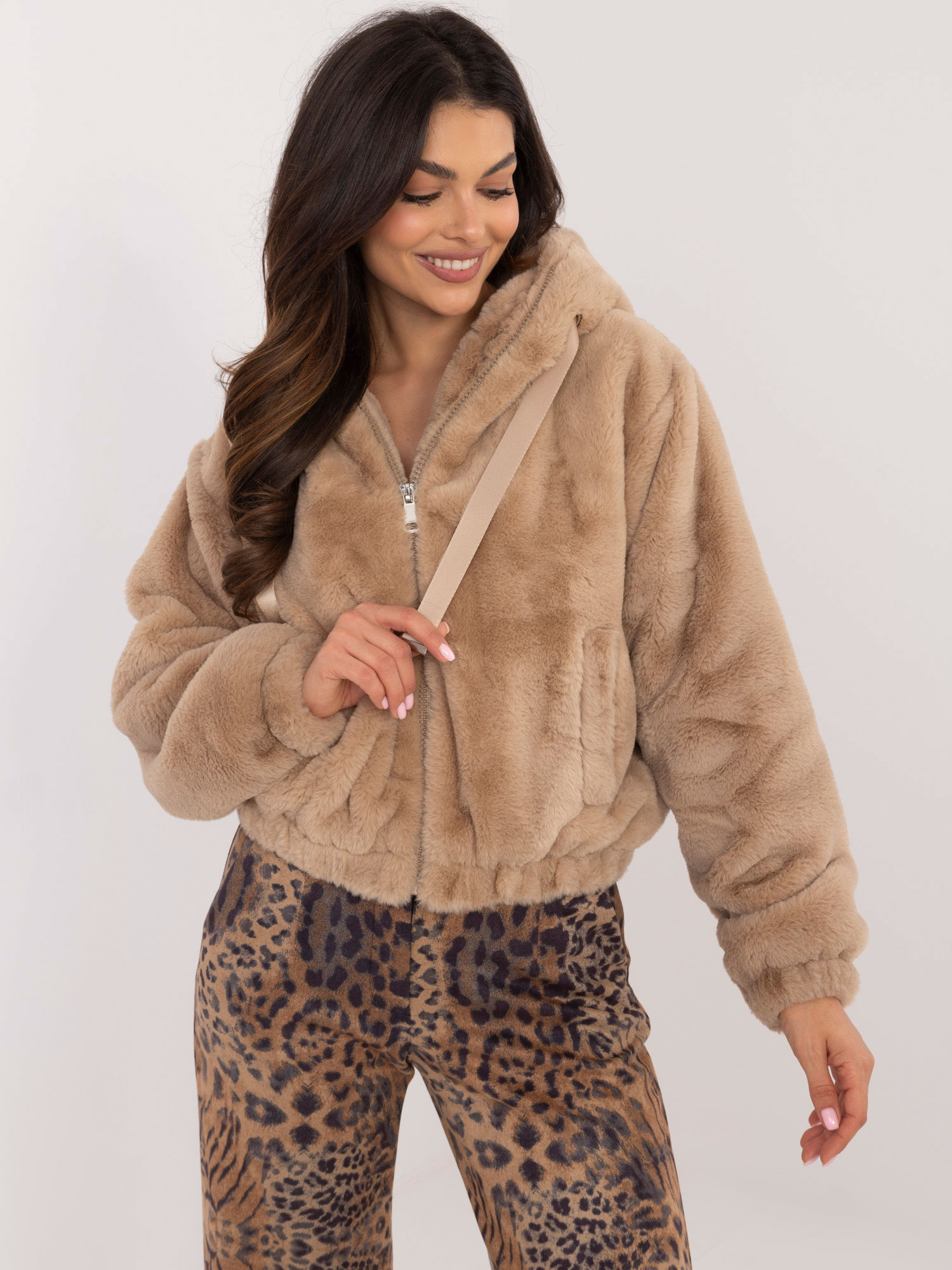 Ez a puha, műszőrme hatású rövid kabát tökéletes választás az őszi és téli átmeneti időszakokra. Könnyű, bélelt kialakítása kényelmes viseletet biztosít, miközben finoman melegít a hűvösebb napokon. A kabát letisztult, egyszínű felülete elegáns, mégis modern megjelenést ad, amely könnyedén illeszthető hétköznapi vagy sportosabb összeállításokhoz is. A praktikus kapucni védelmet nyújt a szél ellen, a teljes hosszában futó cipzár pedig egyszerű felvételt tesz lehetővé. Oldalsó zsebei kézmelegítésre vagy kisebb tárgyak tárolására is alkalmasak, a puha belső bélés pedig tovább növeli a komfortérzetet. A rövid fazon modern és nőies megjelenést ad, így sokoldalúan kombinálható blúzokkal, pulóverekkel vagy sportos felsőkkel is.