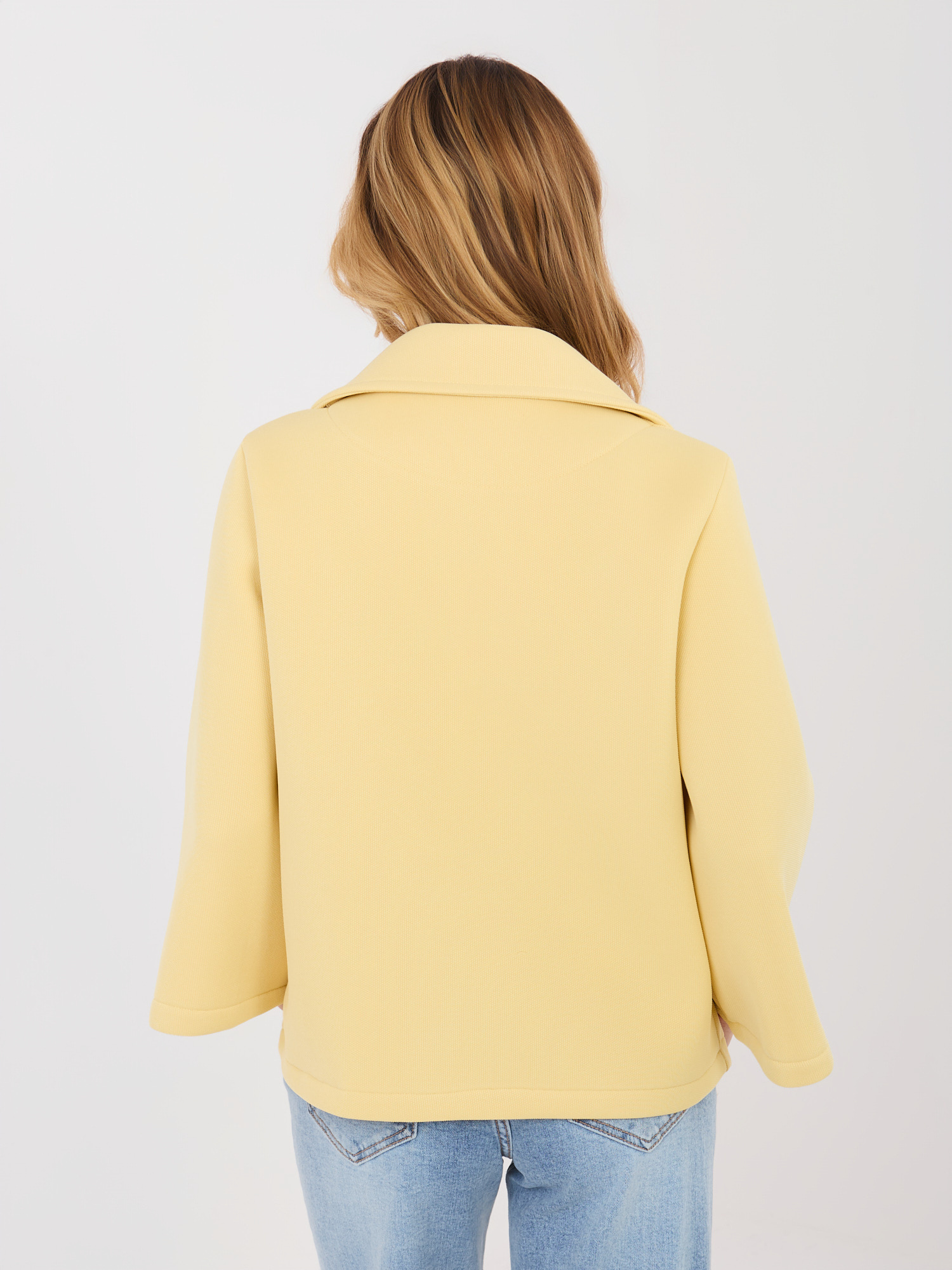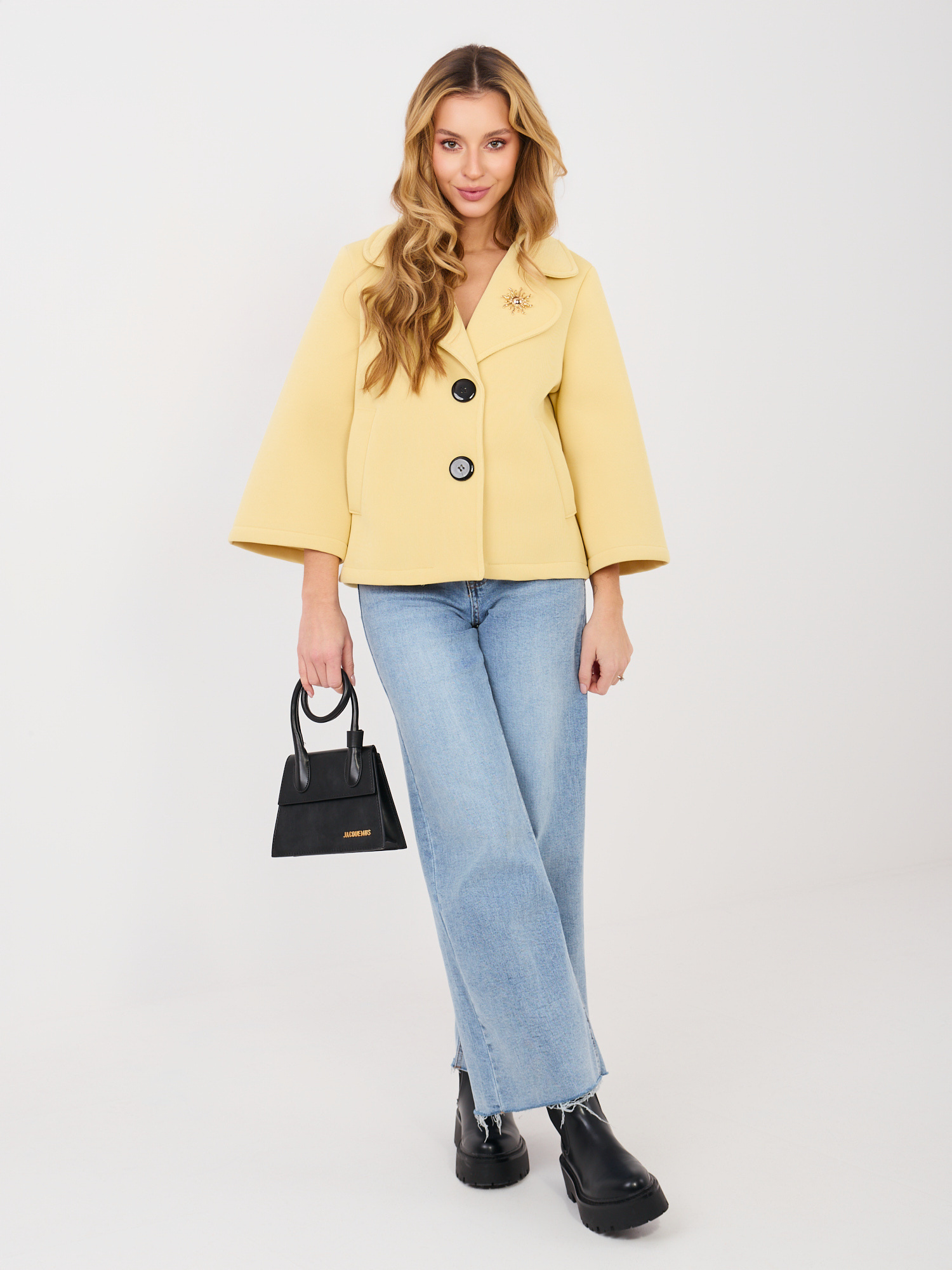 Sárga átmeneti kabát brossal