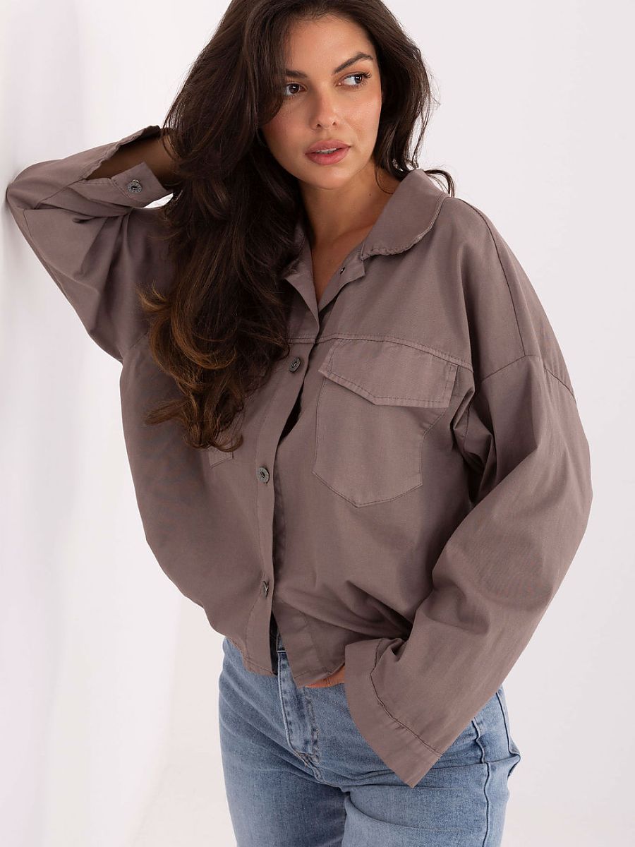 Sötét bézs ing zsebbel