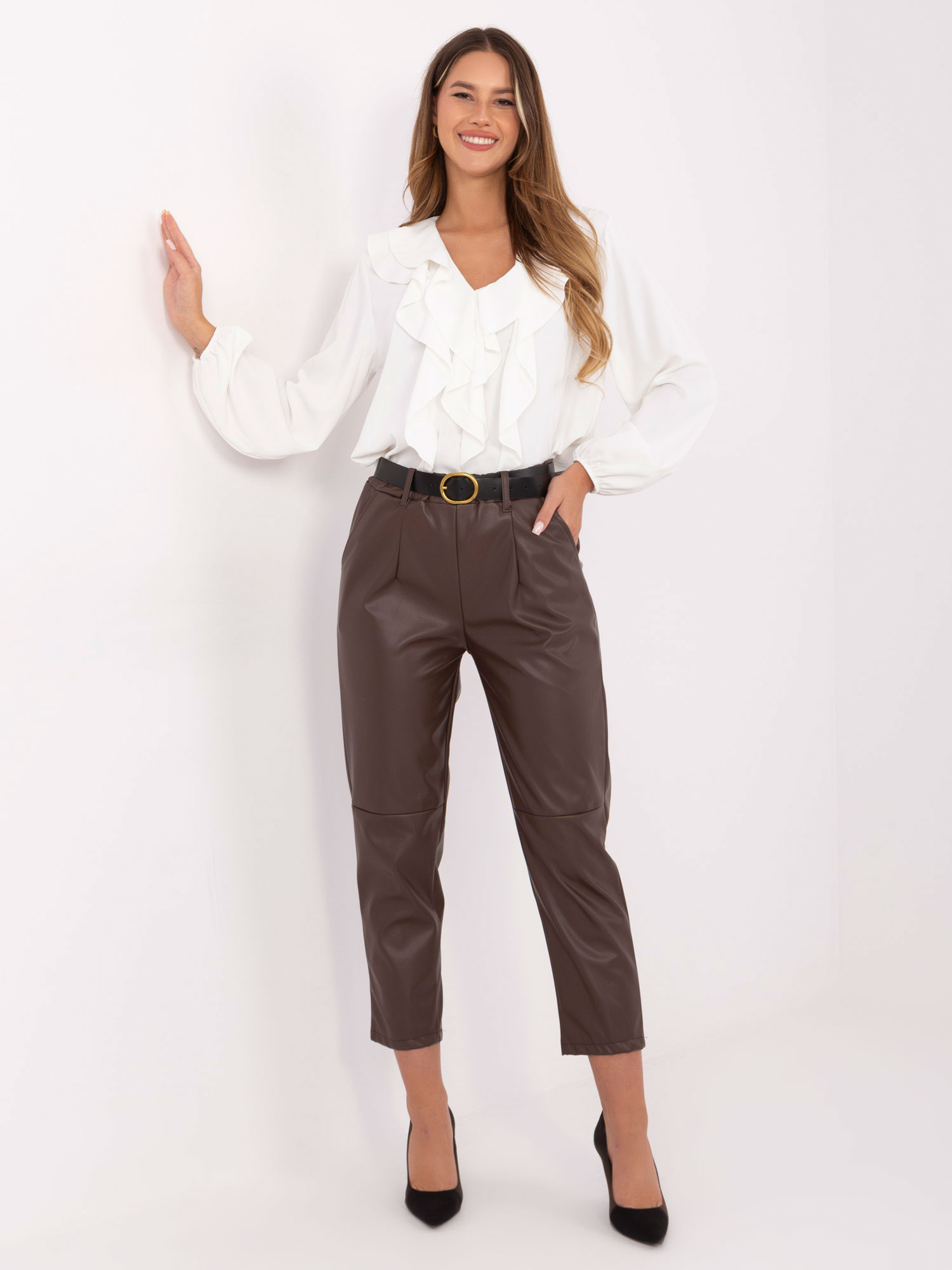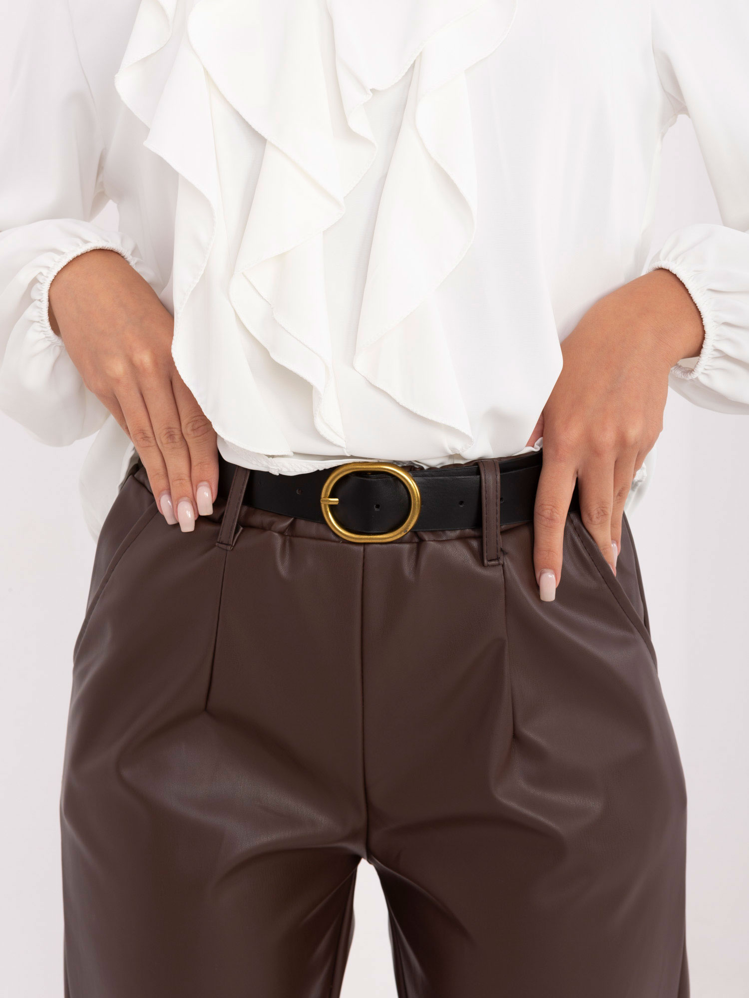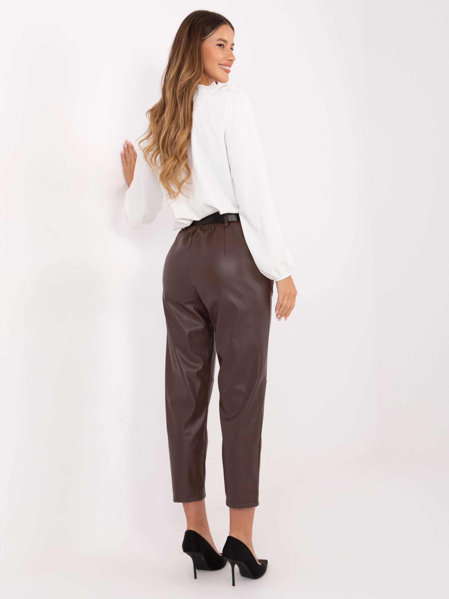 Sötétbarna ekobőr nadrág övvel