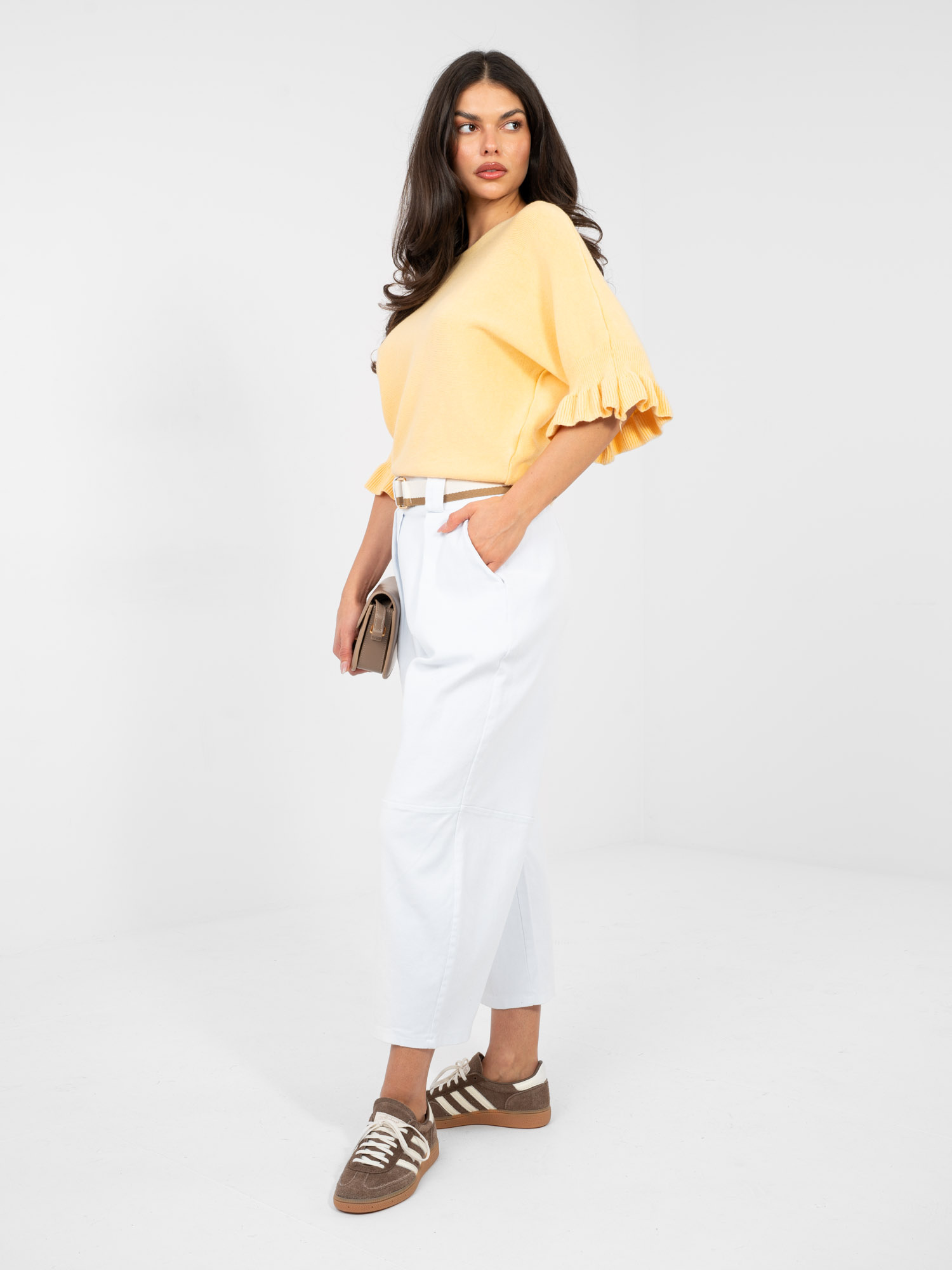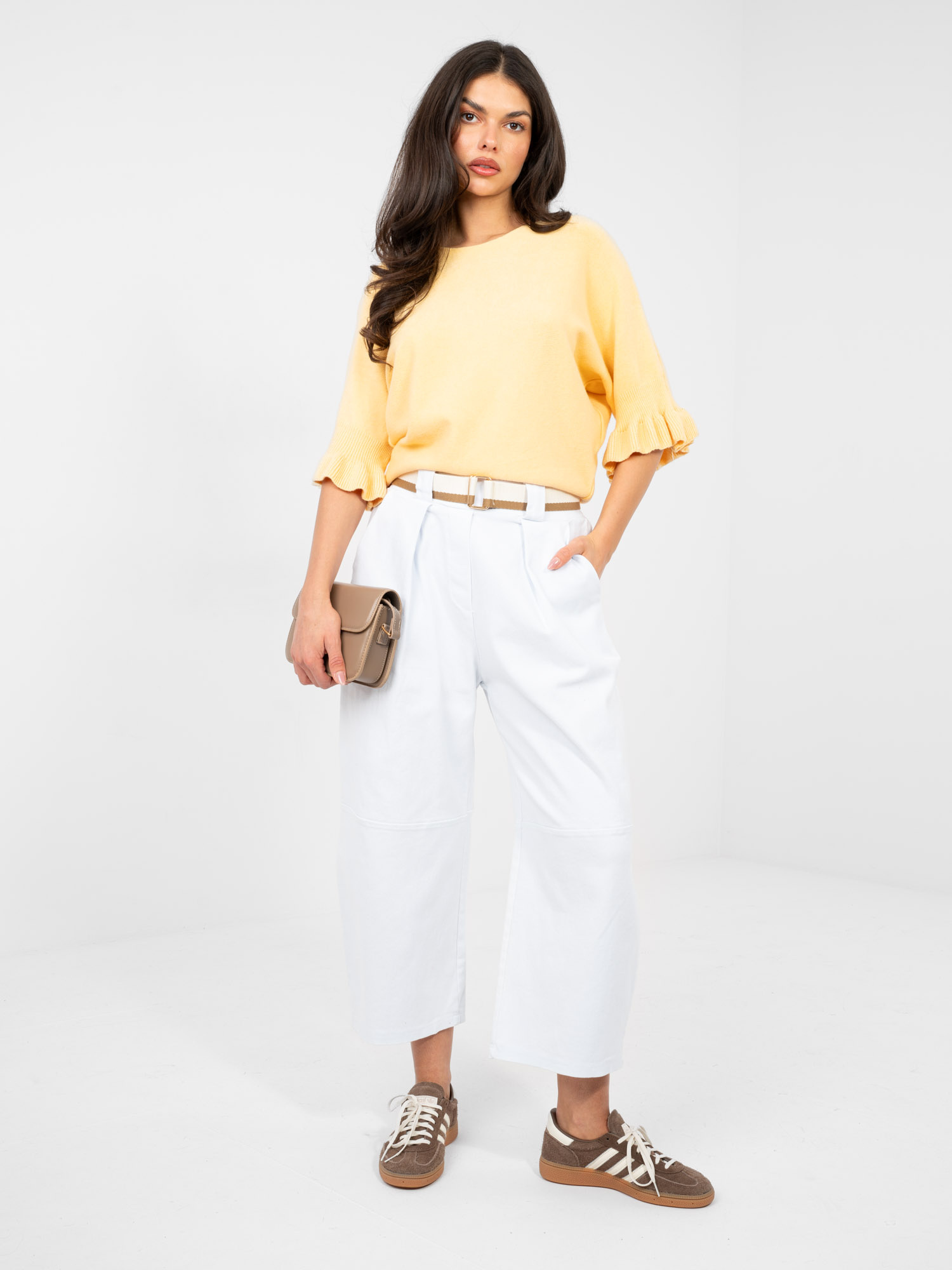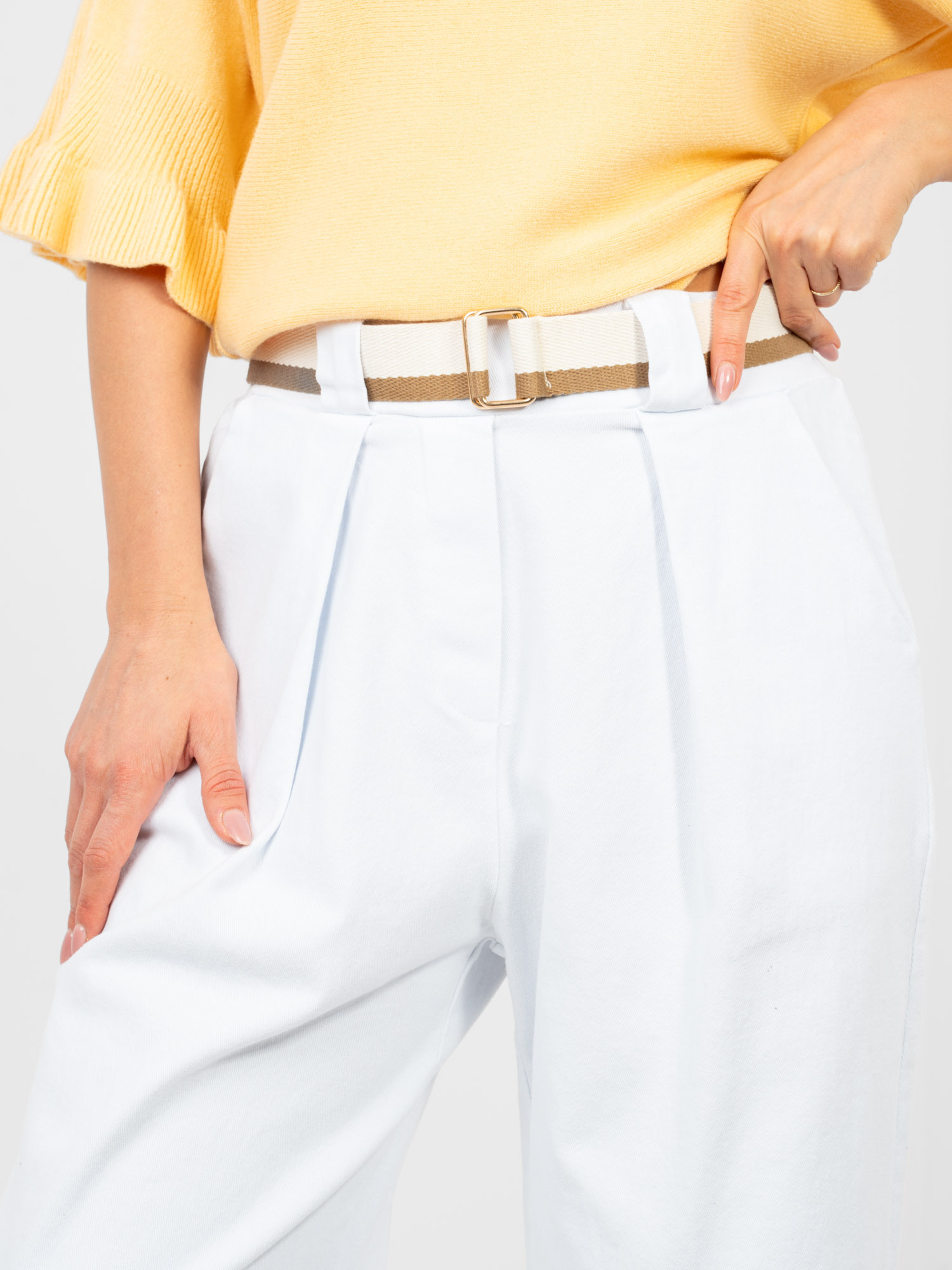 Fehér culotte nadrág övvel