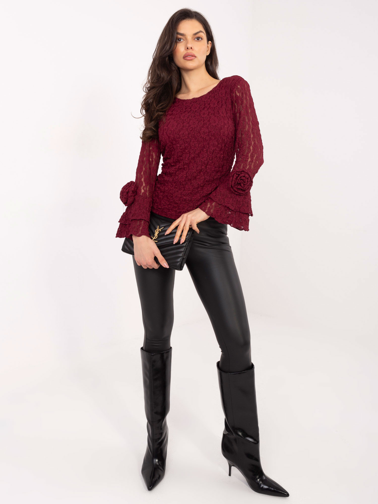 Tölcsér ujjas bordó csipke felső