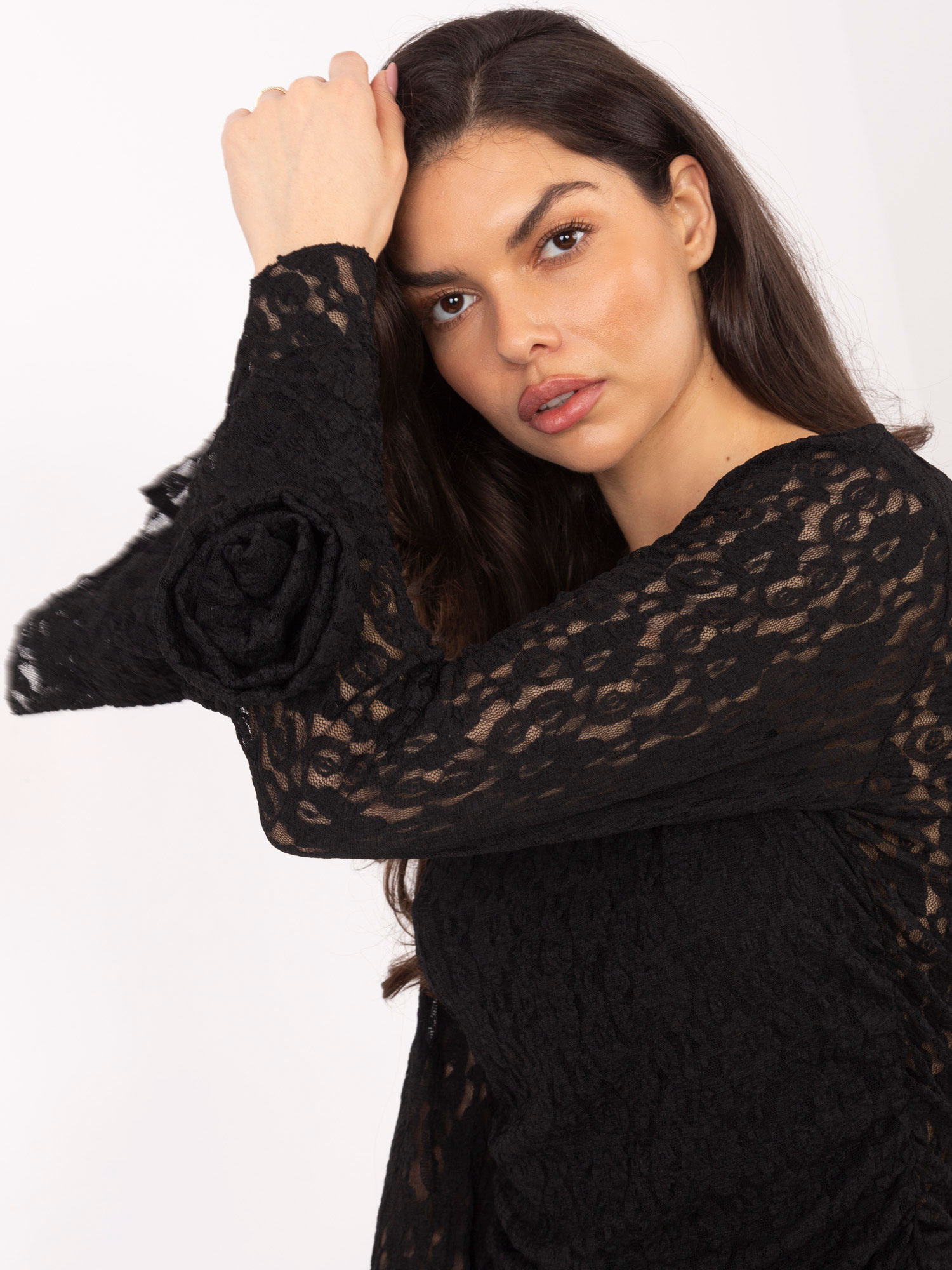 Ez az ITALY MODA elegáns, különleges textúrájú blúza igazán nőies választás mind hétköznapi, mind alkalmi megjelenéshez. A finoman strukturált anyag, a csipke részletek, a fodrok és a lágy ráncolások különleges karaktert adnak a darabnak. A blúz bélelt, így kényelmes és nem áttetsző, az egyenes szabás pedig könnyedén idomul különböző alkatokhoz.